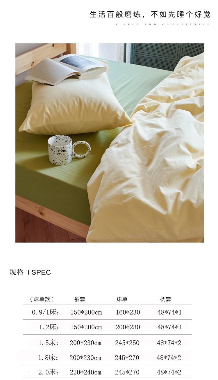 北欧风ins纯棉水洗棉床四件套全棉简约被套床单上三件套床笠,白色+藏青,藏青+浅蓝,鹅黄+螺旋藻绿,鹅黄+牛油果,螺旋藻绿+鹅黄,千夏紫+水貂灰,千夏紫+薇薇紫,薇薇紫+浅灰,浅蓝+鹅黄,浅蓝+白色,浅蓝+藏青