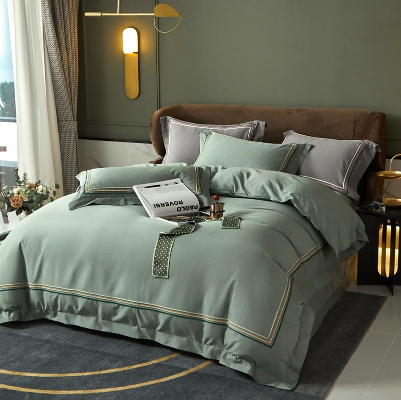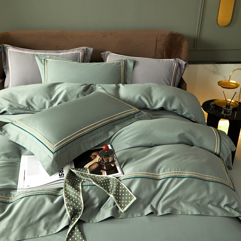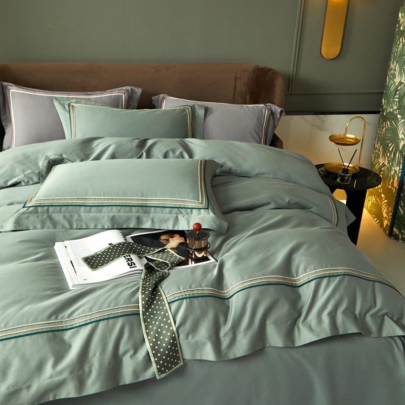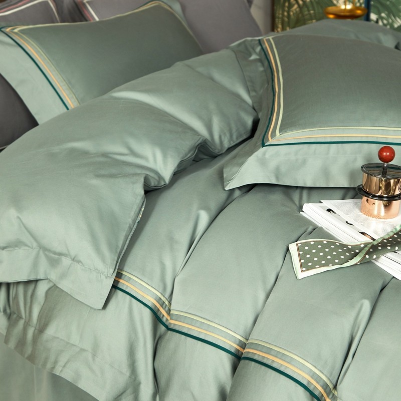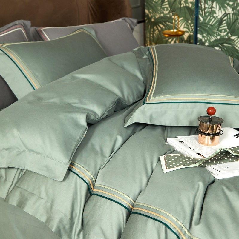 威克凯丽 秋冬60拼接磨毛四件套 花栖寻梦-清水绿