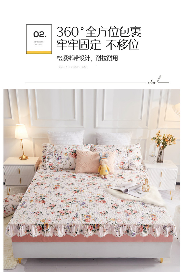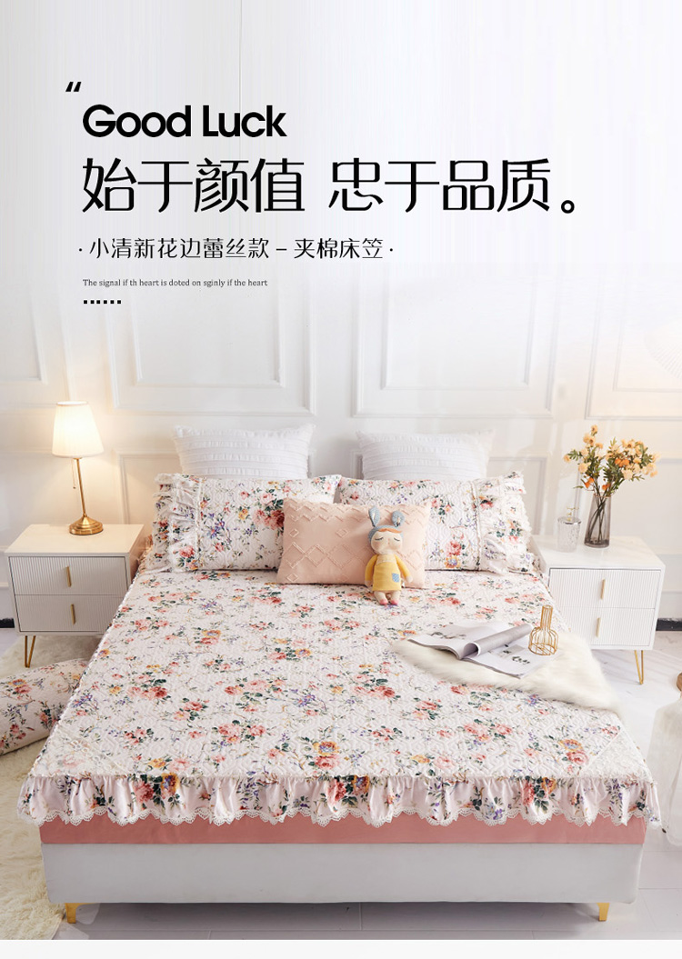• 91家纺网 家纺一手货源 找家纺 菊上家纺 2021新款小清新花边床笠款芳菲粉