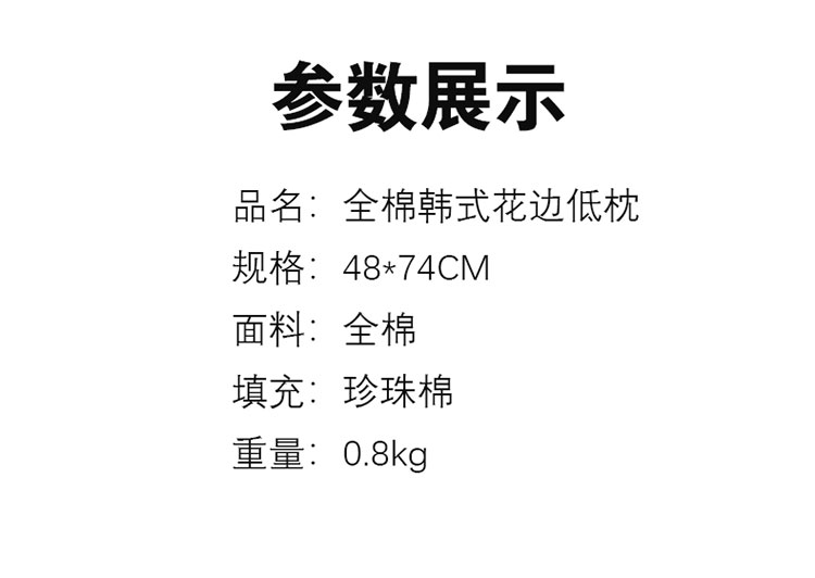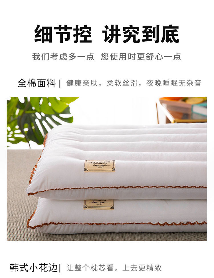 当前位置: 91家纺网 > 商品网购 > 枕头/枕芯/保健枕/颈椎枕 > 普通枕芯 > (总)枕之坊 2021新款全棉韩式花边低枕