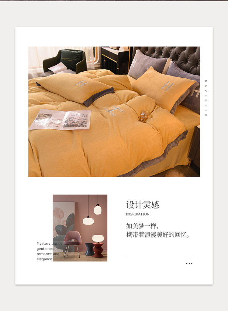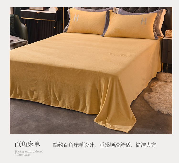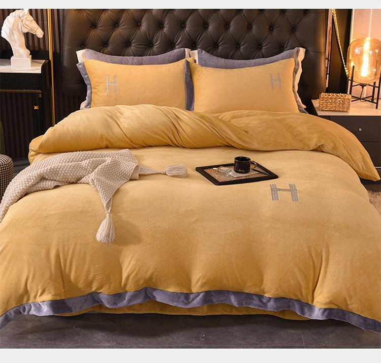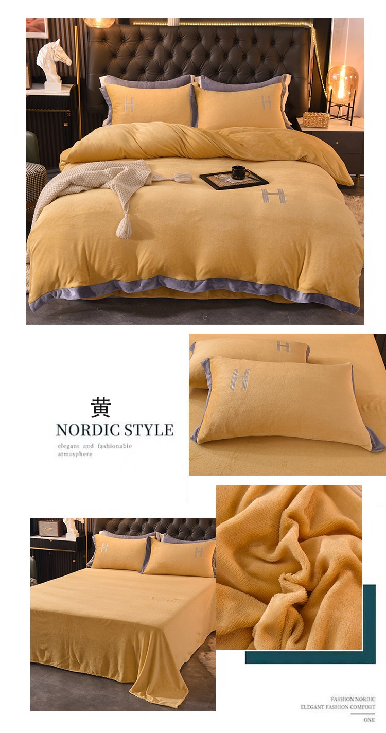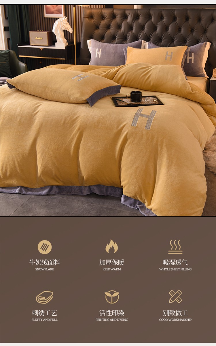 商品名称:艾米家居 2021新款牛奶绒刺绣H款四件套 黄