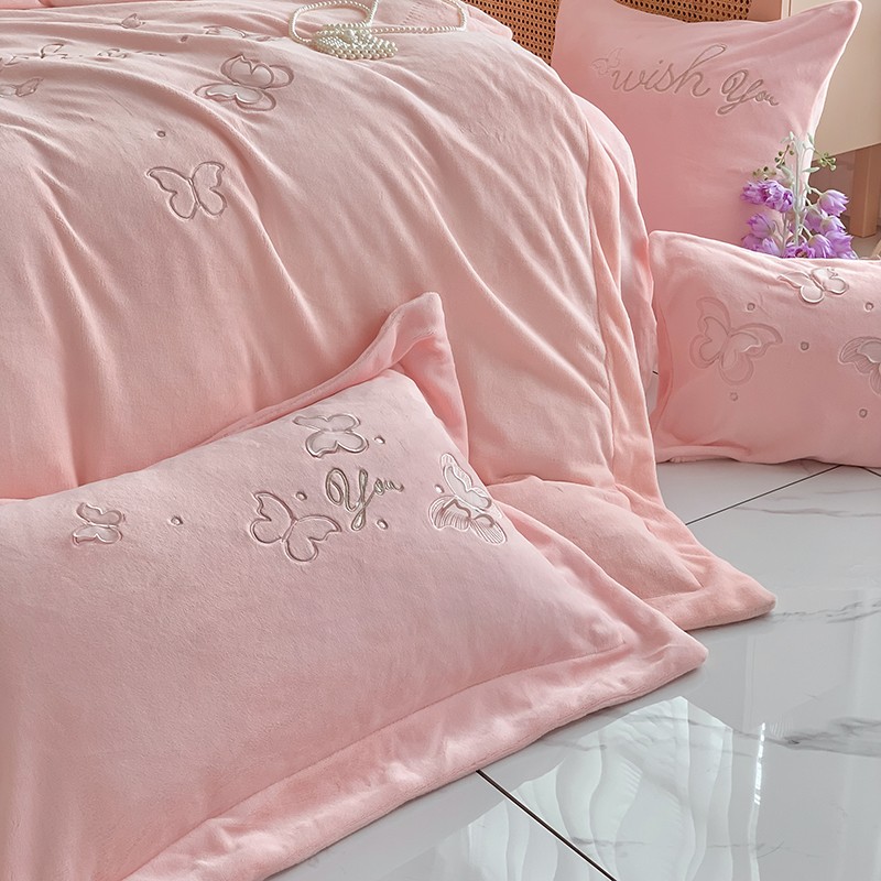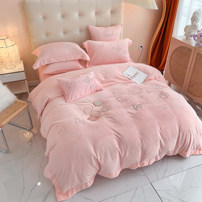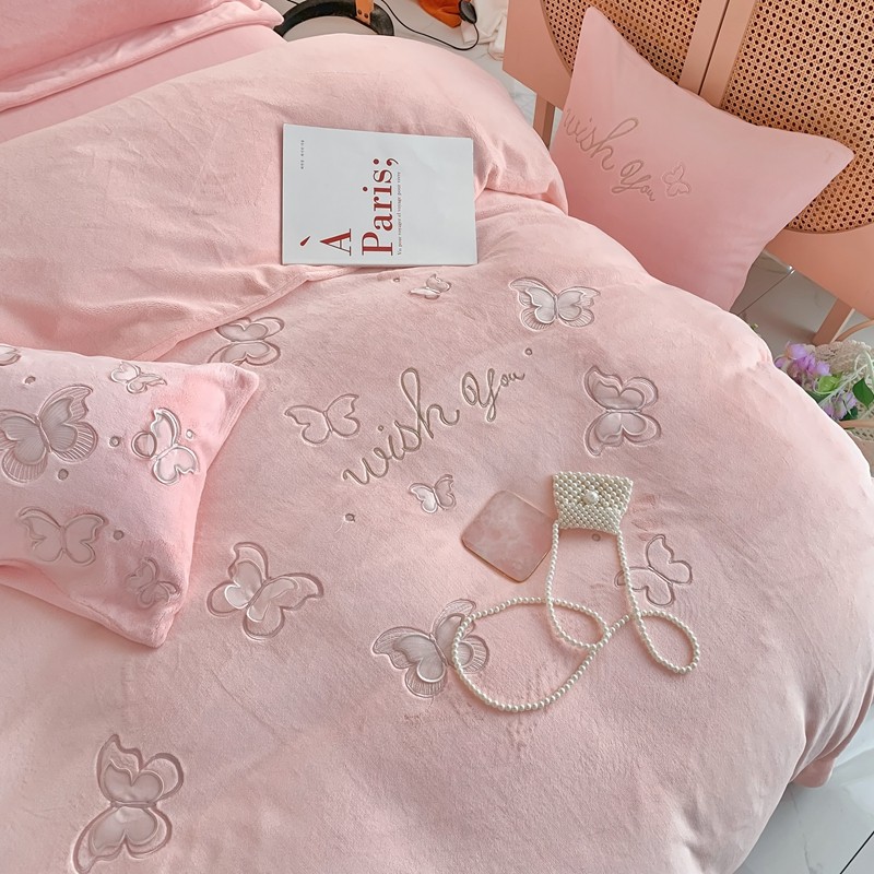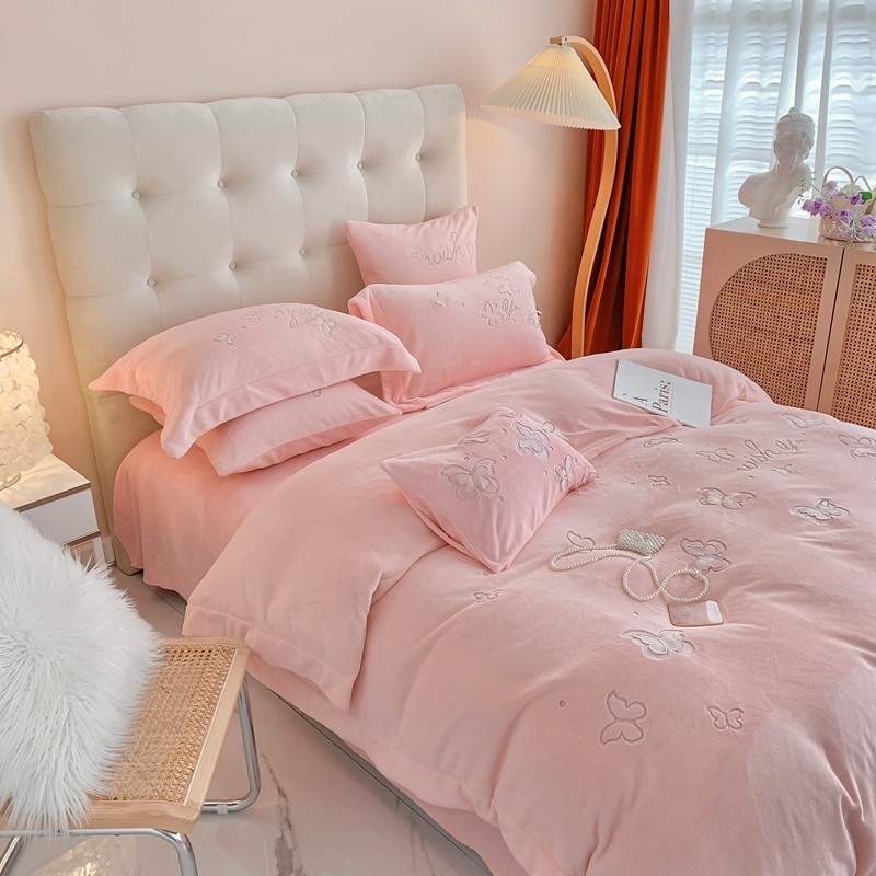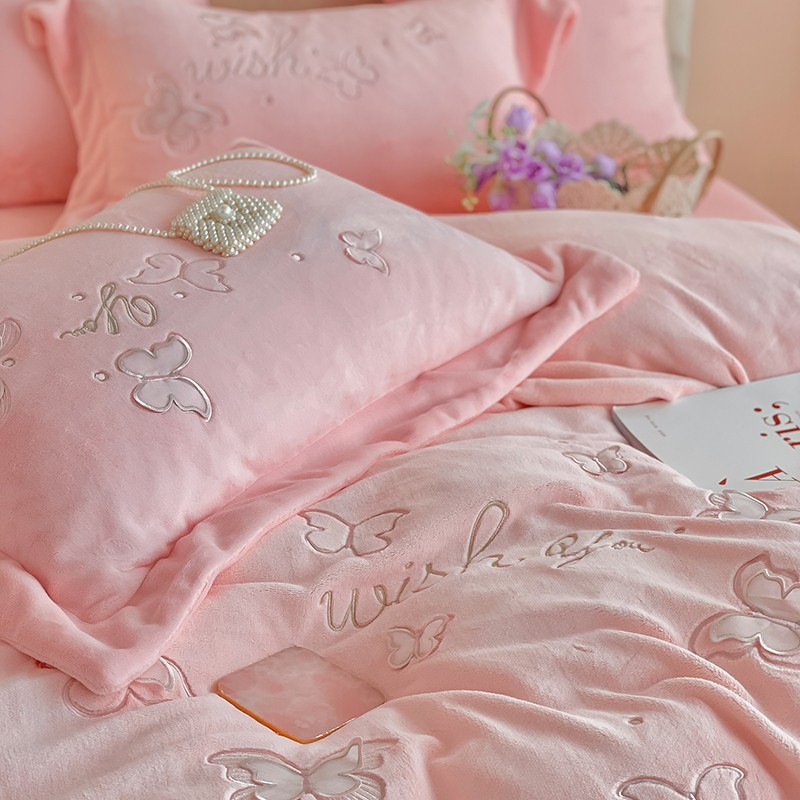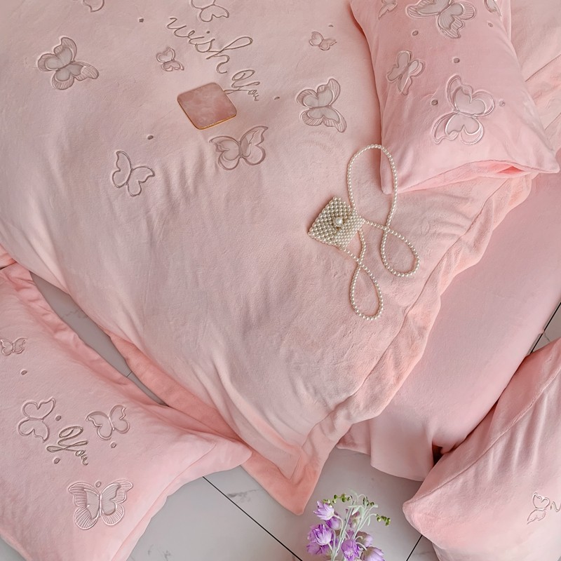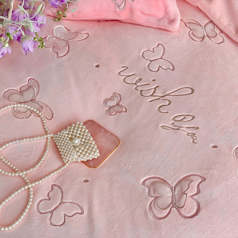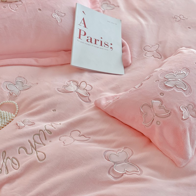 星尚 2021新款A类进口牛奶绒加厚水晶绒绣花四件套 蝴蝶仙子-雅粉
