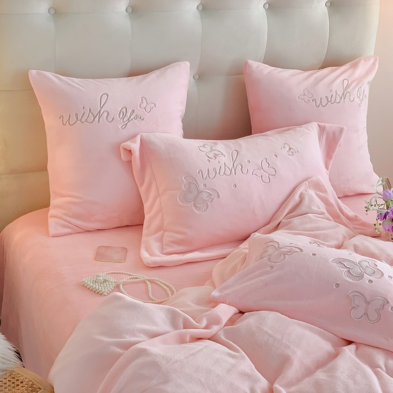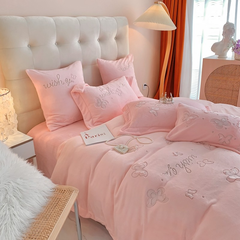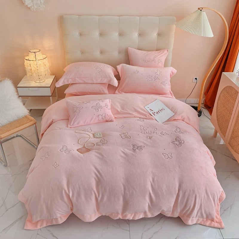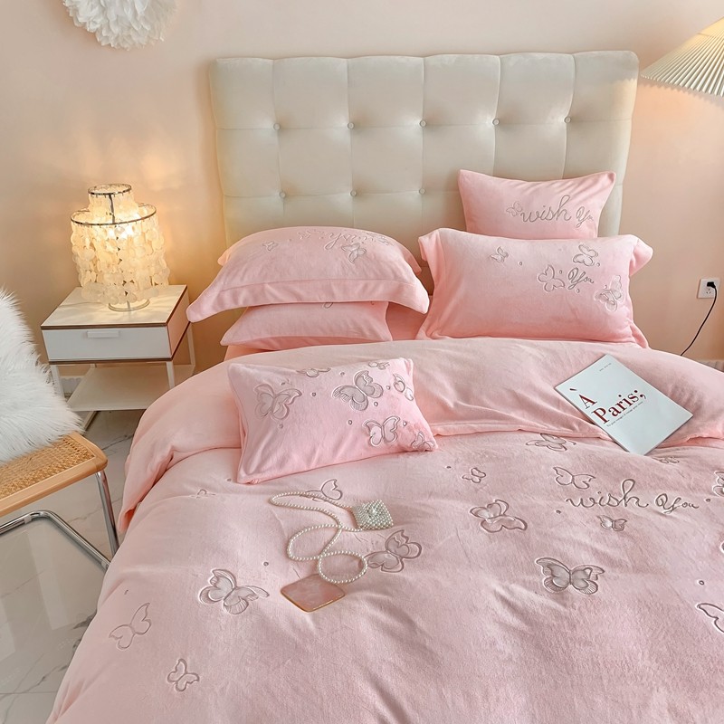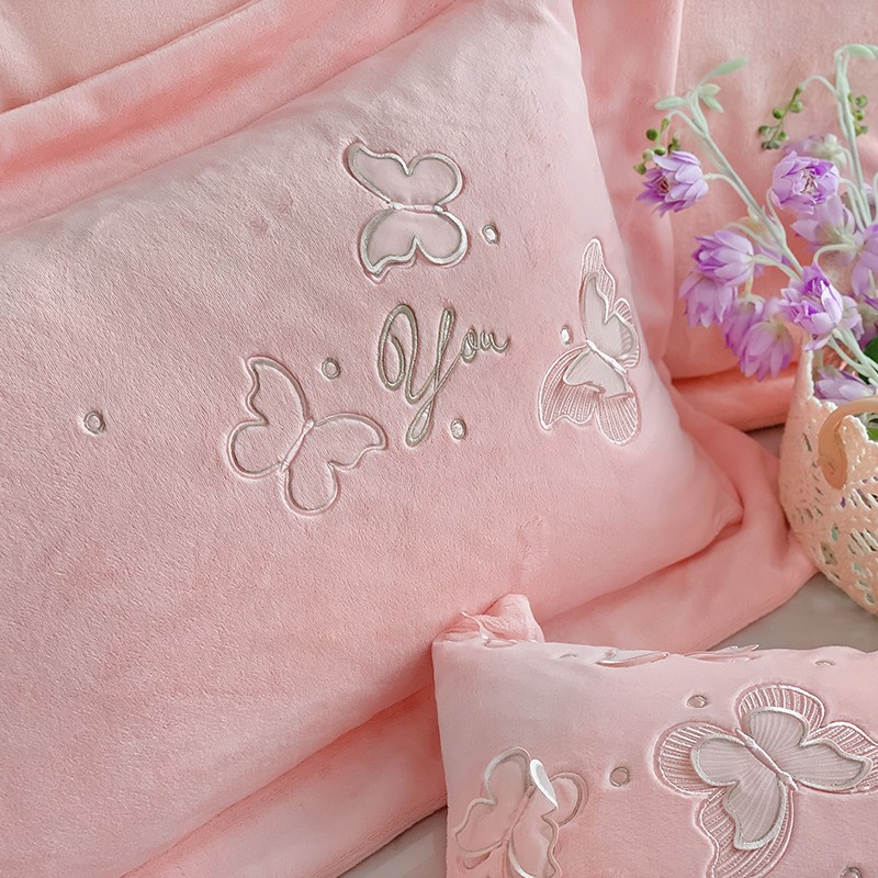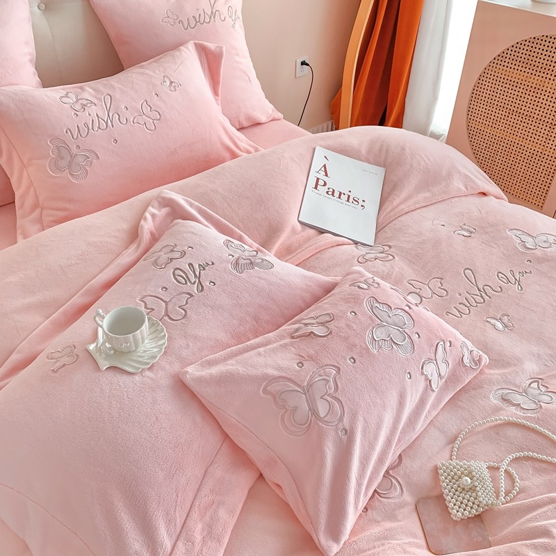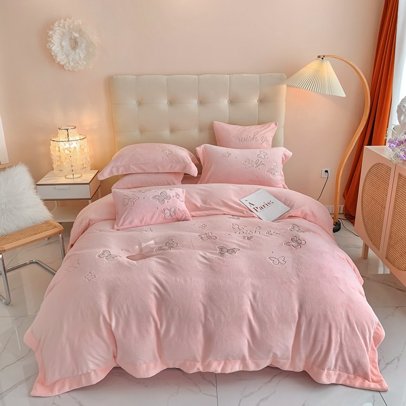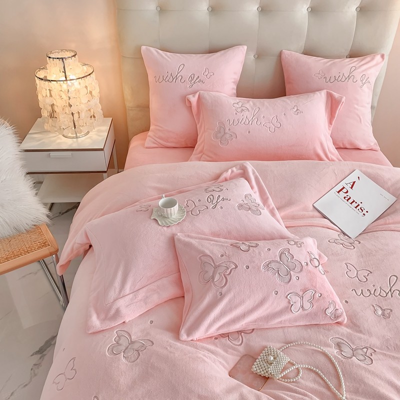 星尚 2021新款A类进口牛奶绒加厚水晶绒绣花四件套 蝴蝶仙子-雅粉
