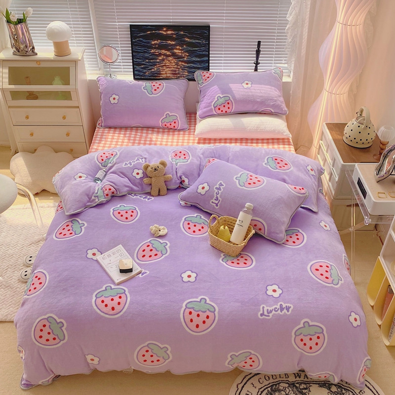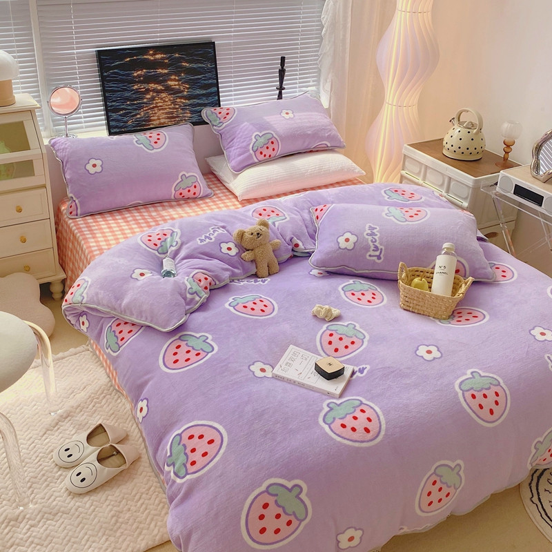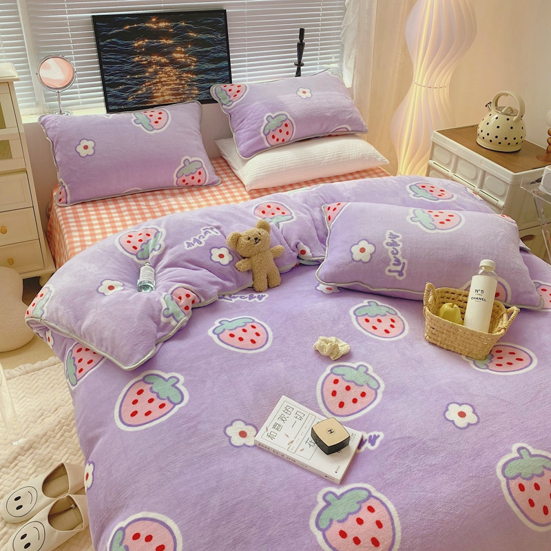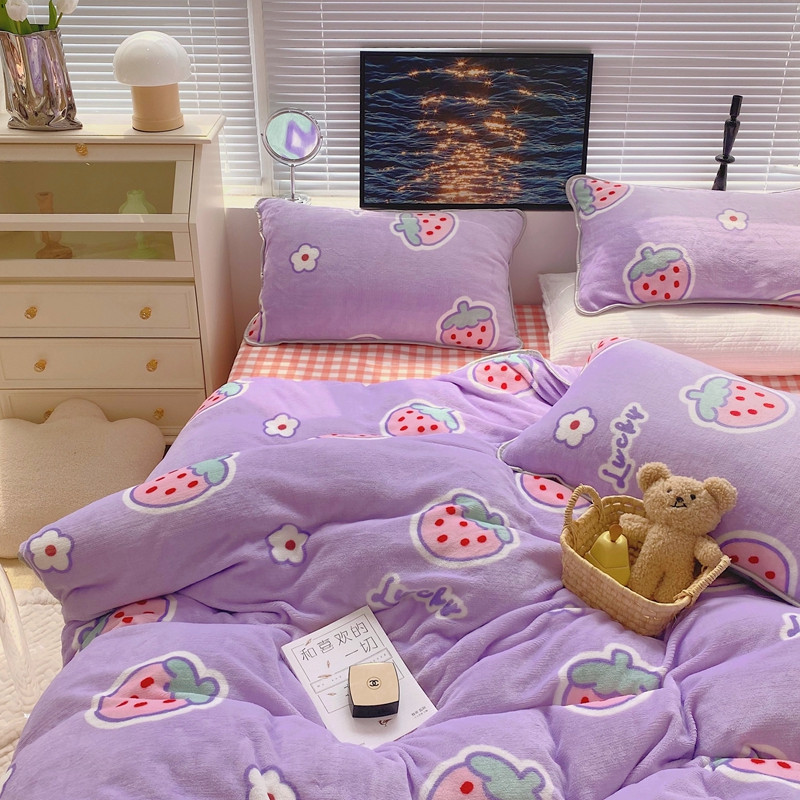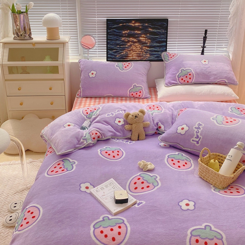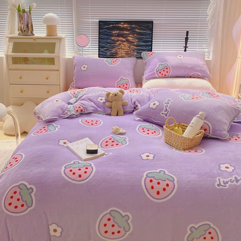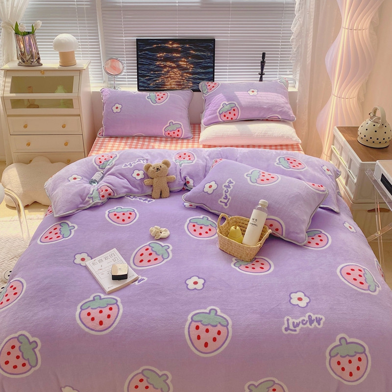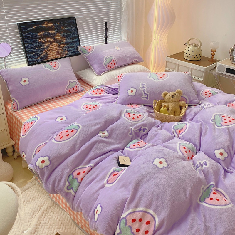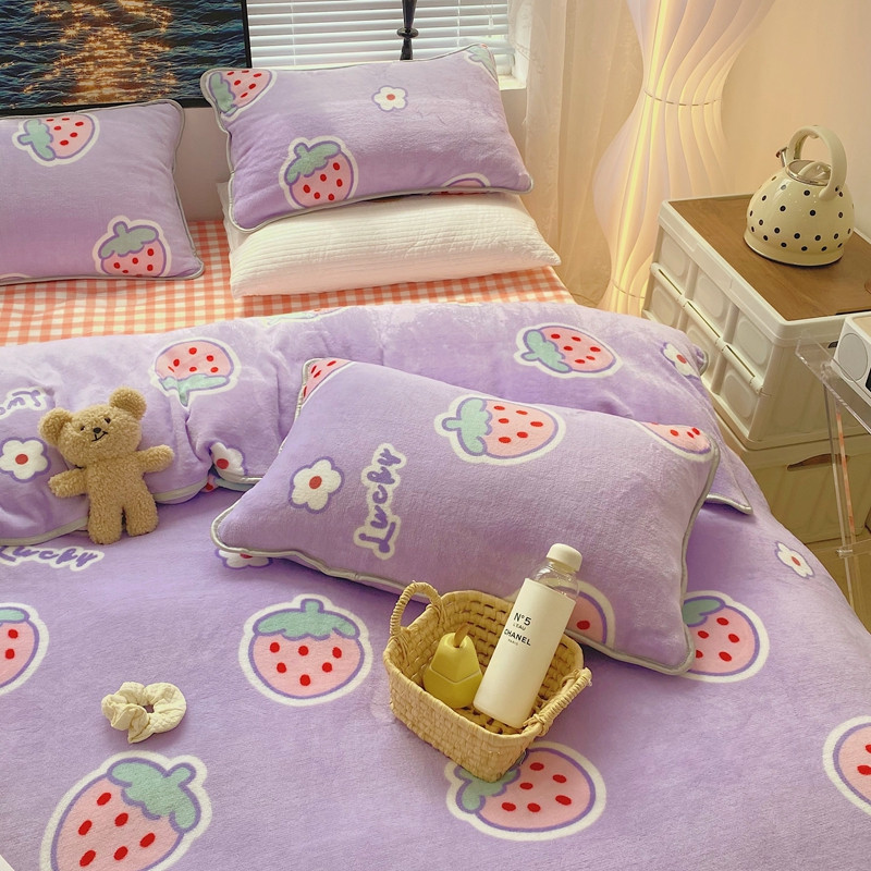 顾里2021新款ins韩国高端保暖牛奶绒四件套 可爱草莓