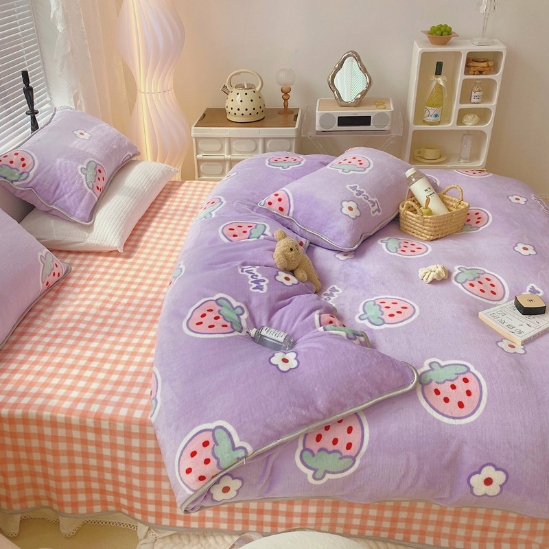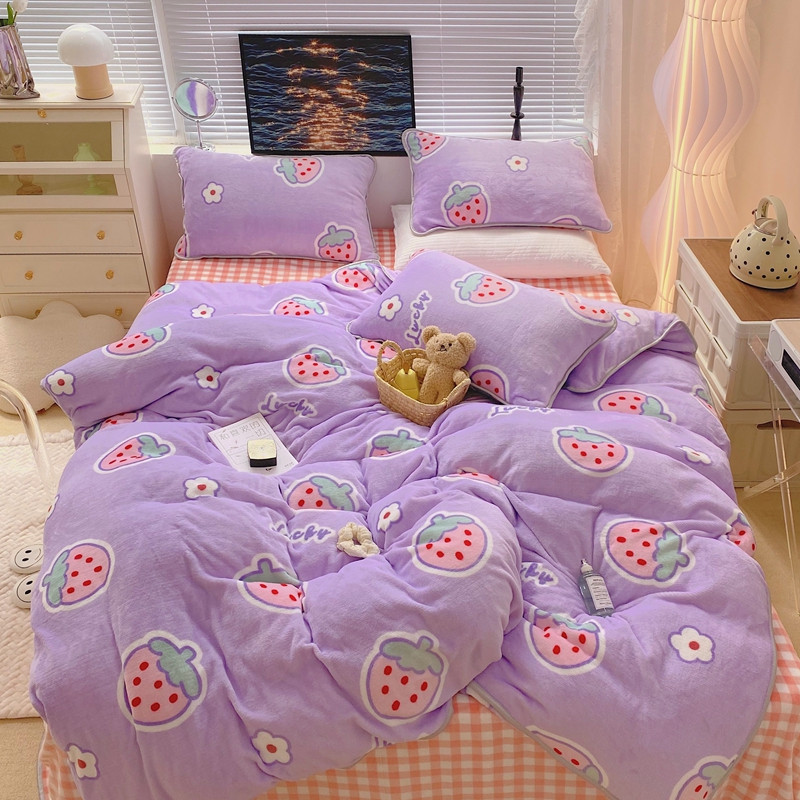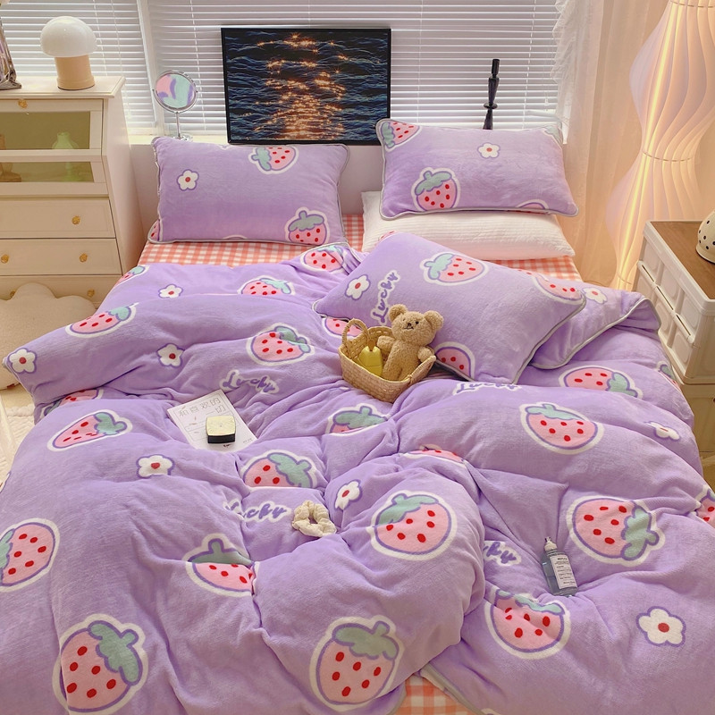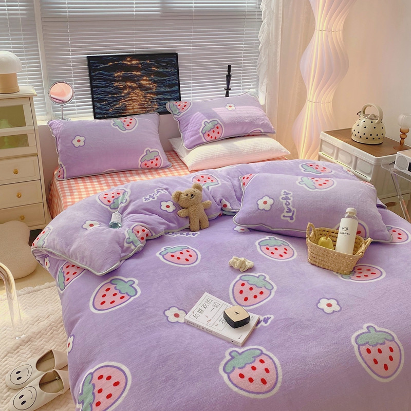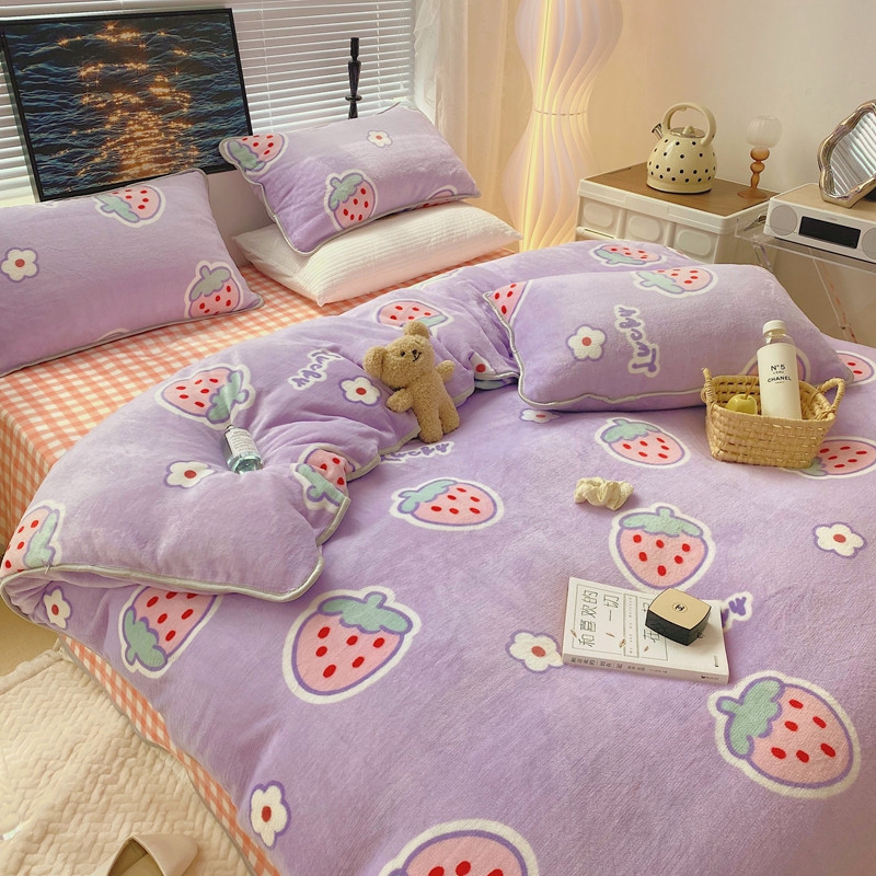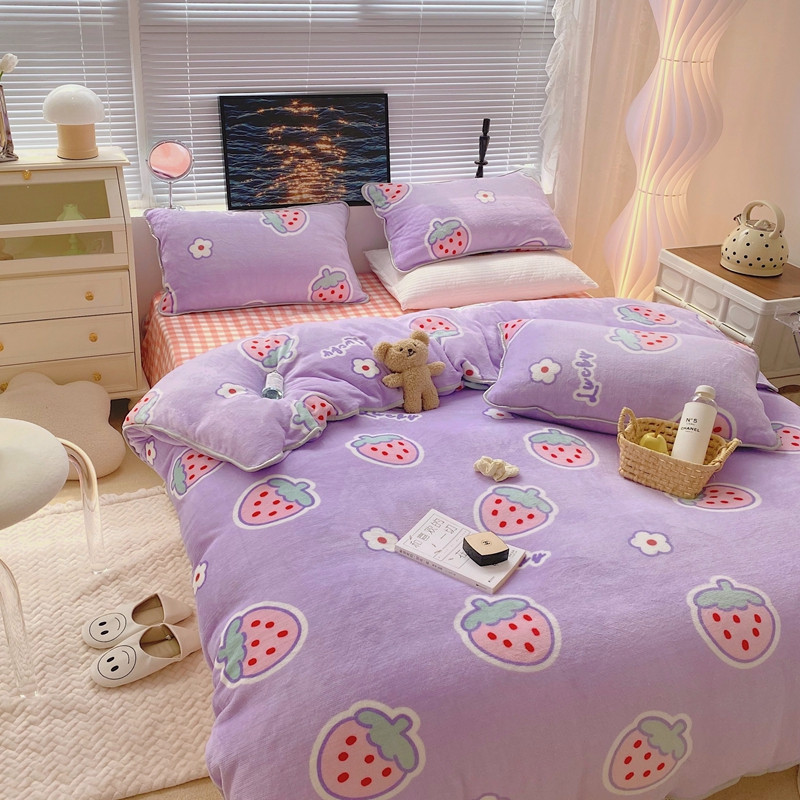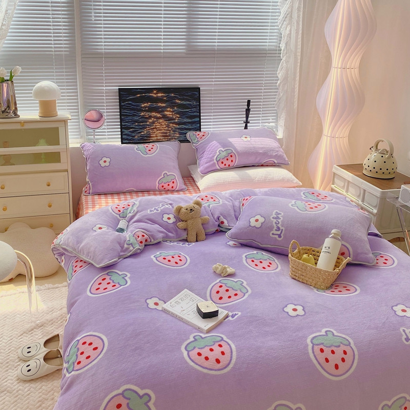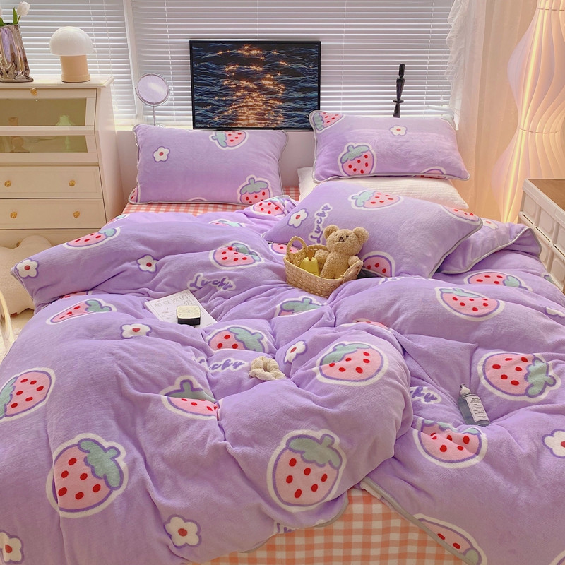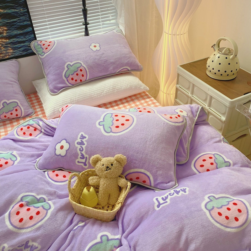 顾里2021新款ins韩国高端保暖牛奶绒四件套 可爱草莓