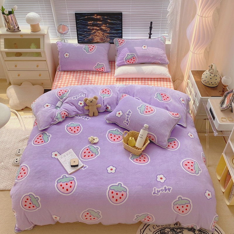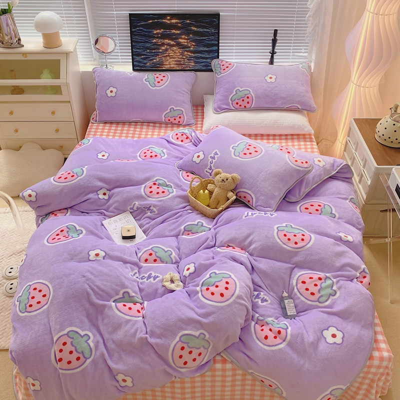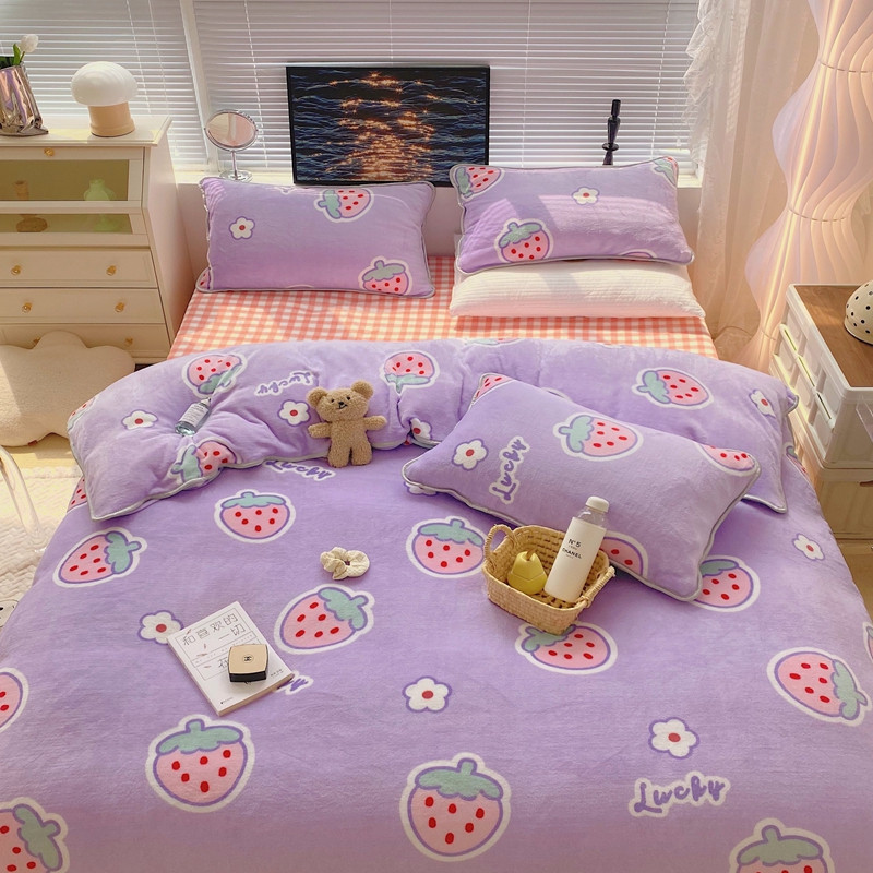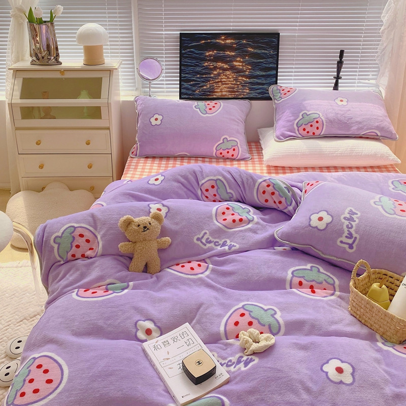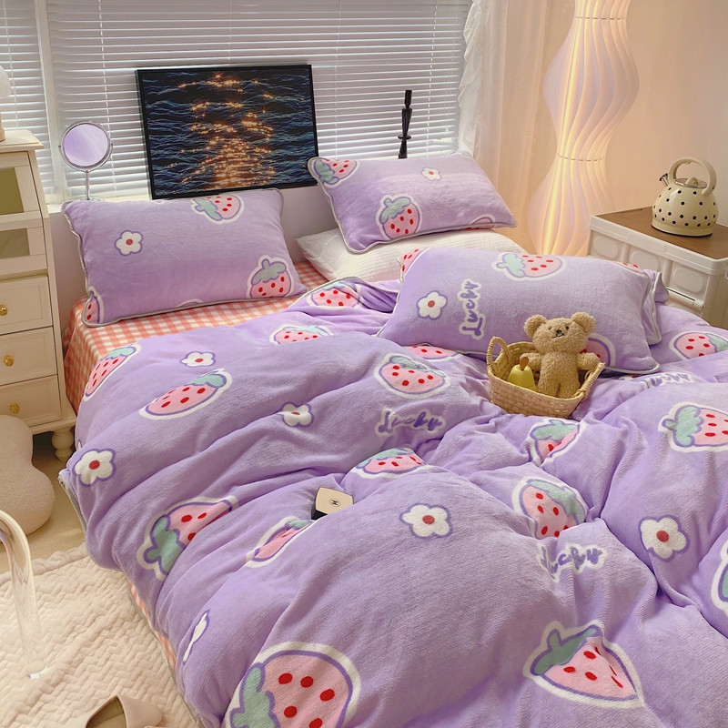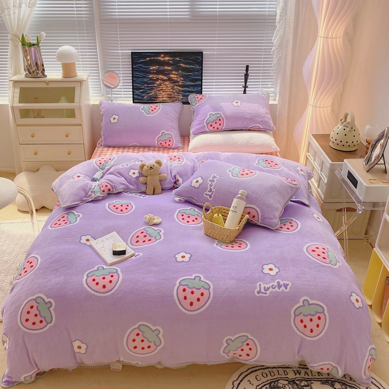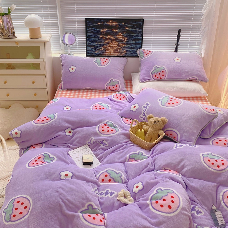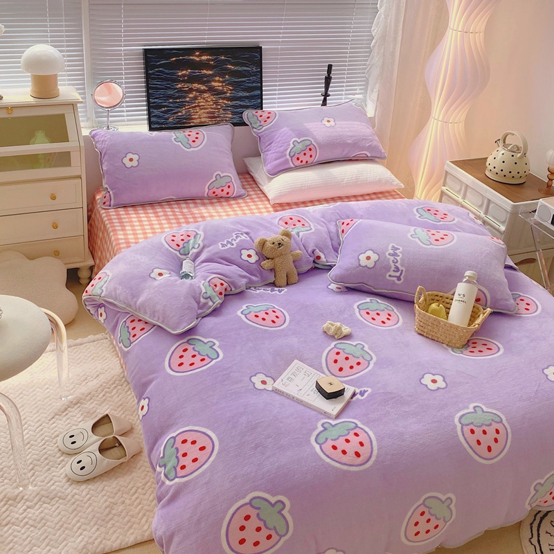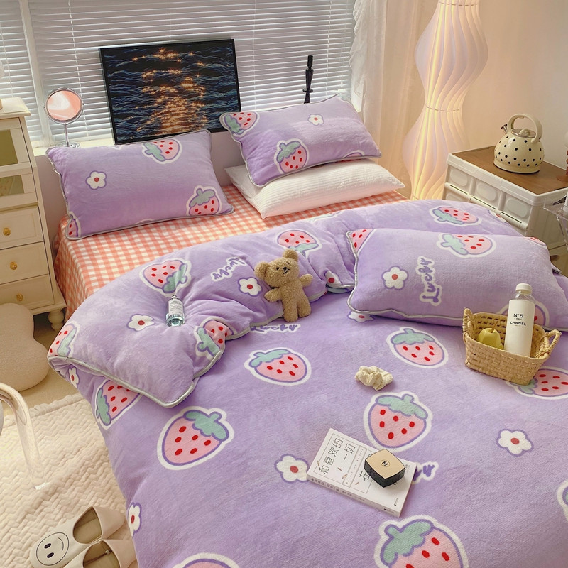 顾里2021新款ins韩国高端保暖牛奶绒四件套 可爱草莓