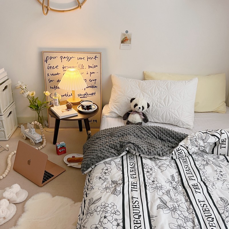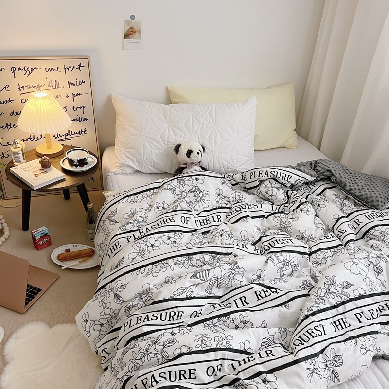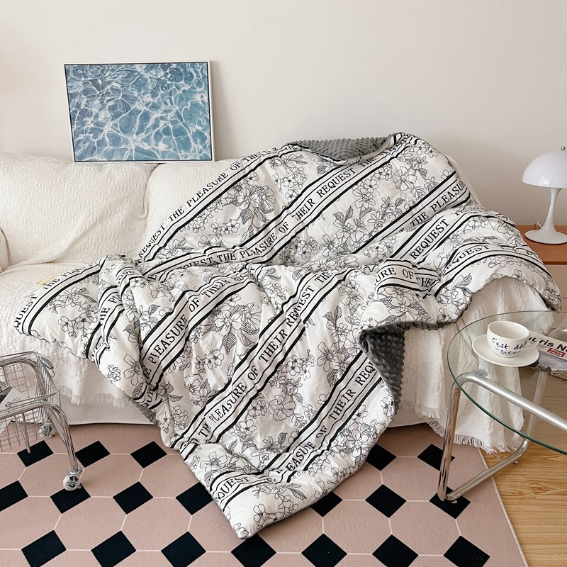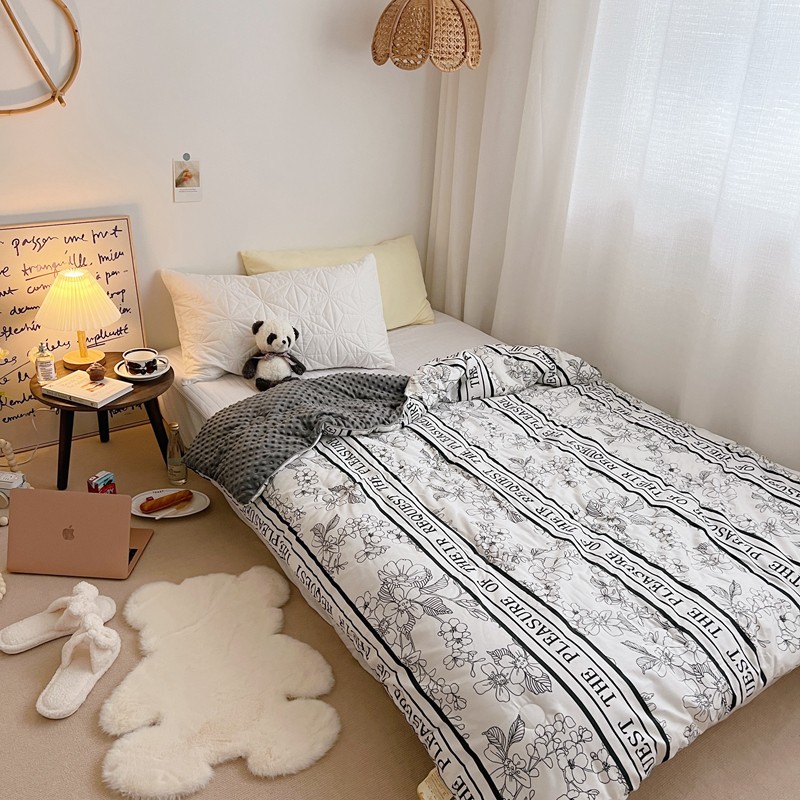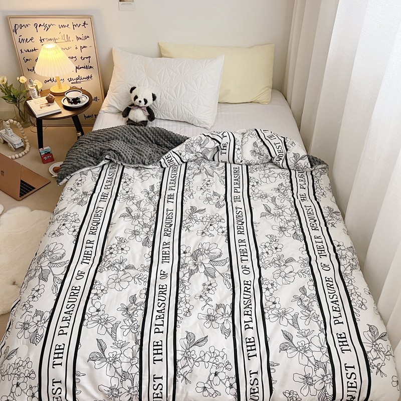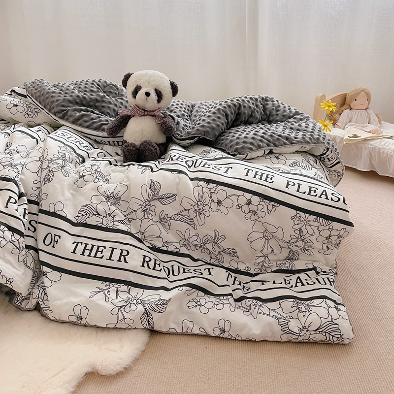 星期八 2021韩国超ins进口安抚豆豆冬被子春秋被黑茶竖条
