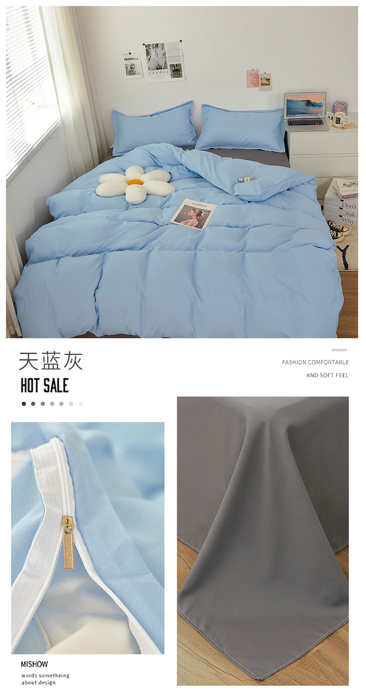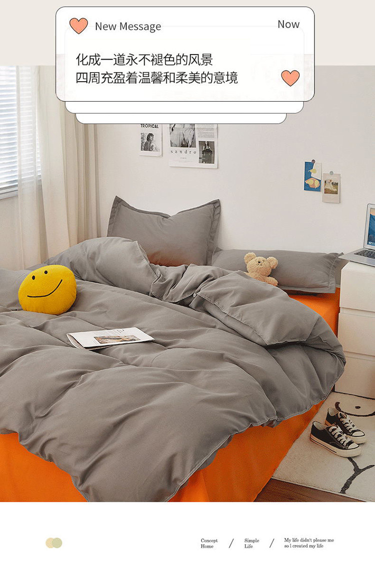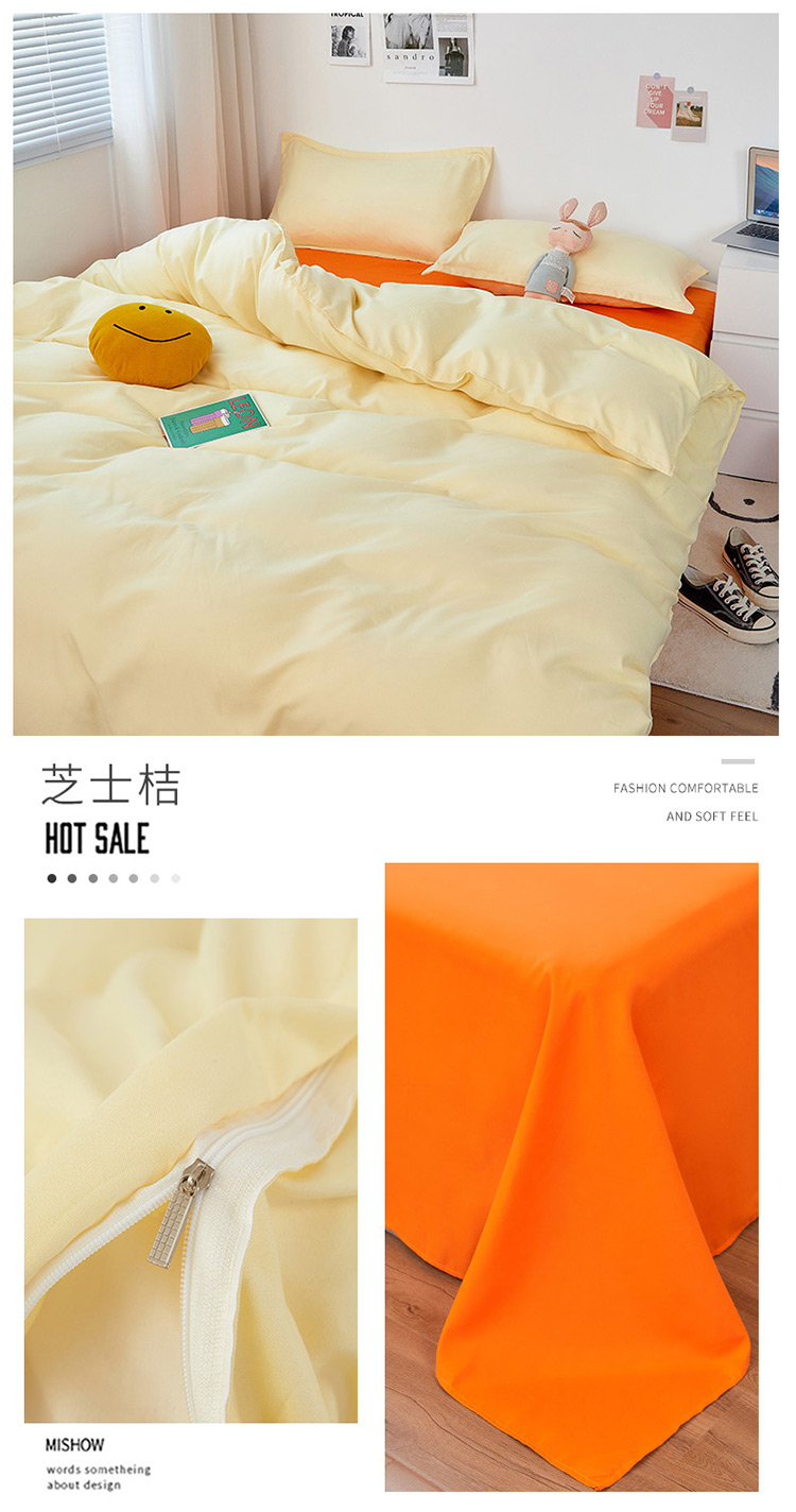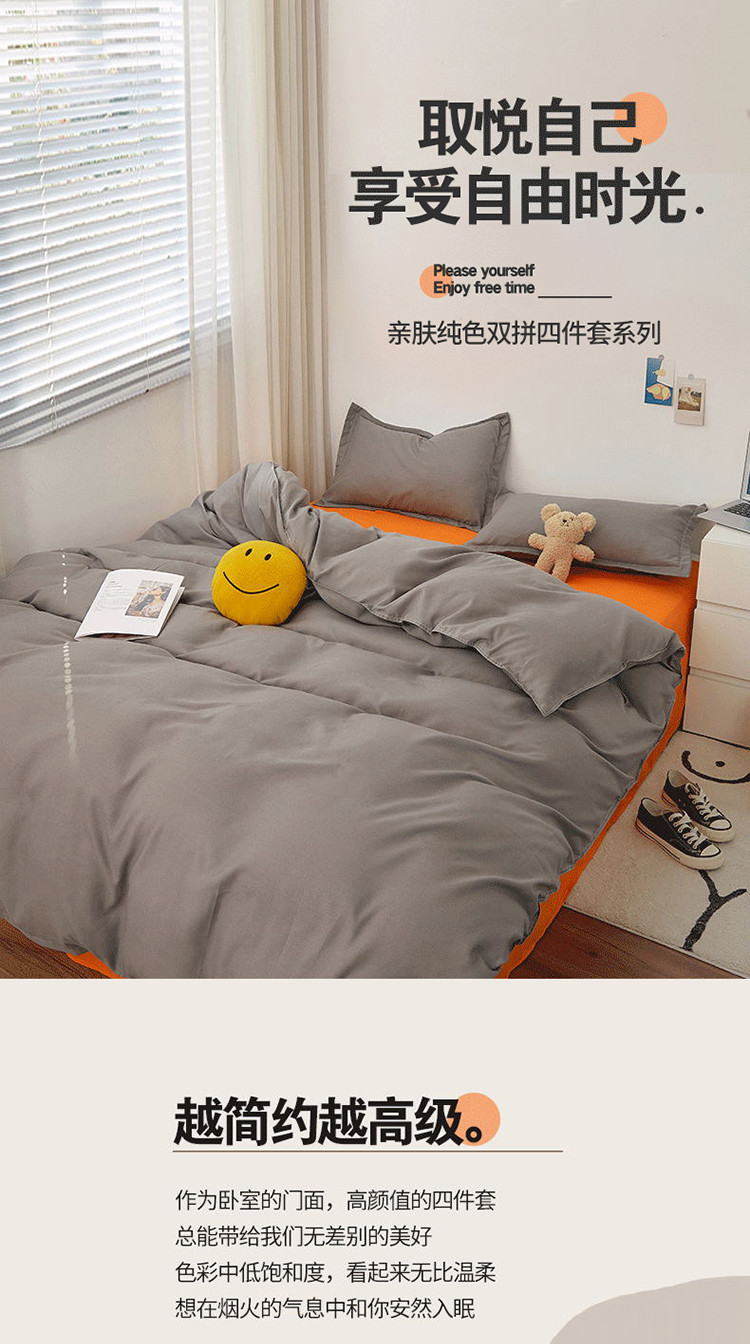 (总)贝拉梦家纺 2025新款纯色磨毛双拼亲肤棉四件套,暗黑骑士,半熟青柠,蓝色星河,奶油香草,乌梅子酱