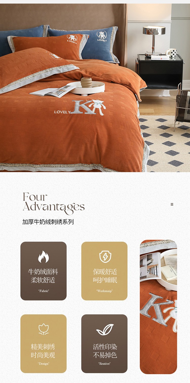 商品名称:总源启生活 2021新款高克重牛奶绒提花华夫格四件套-KK熊