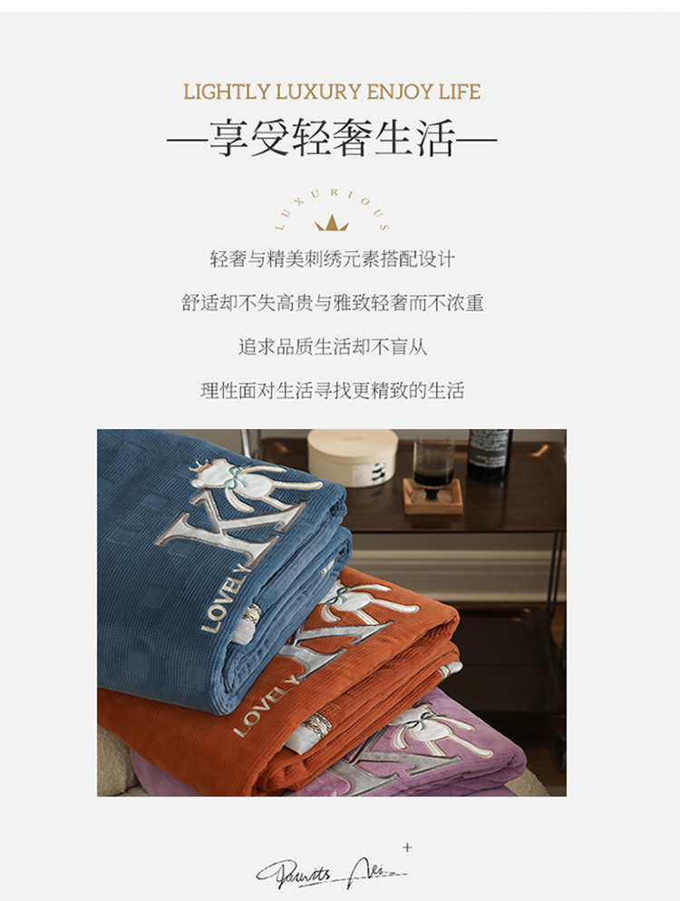 总源启生活 2021新款高克重牛奶绒提花华夫格四件套-KK熊