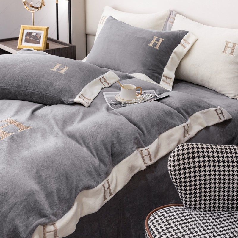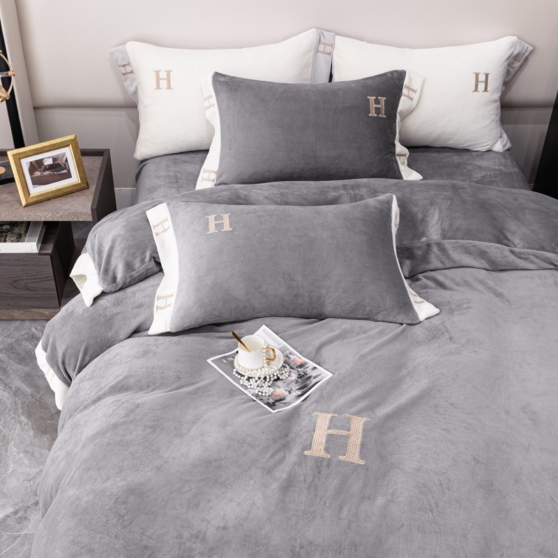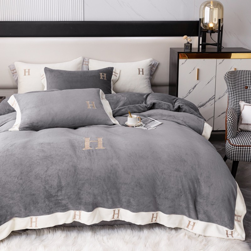 商品名称:芯贝儿 2021新款加厚牛奶绒轻奢宽边刺绣四件套 雅士灰