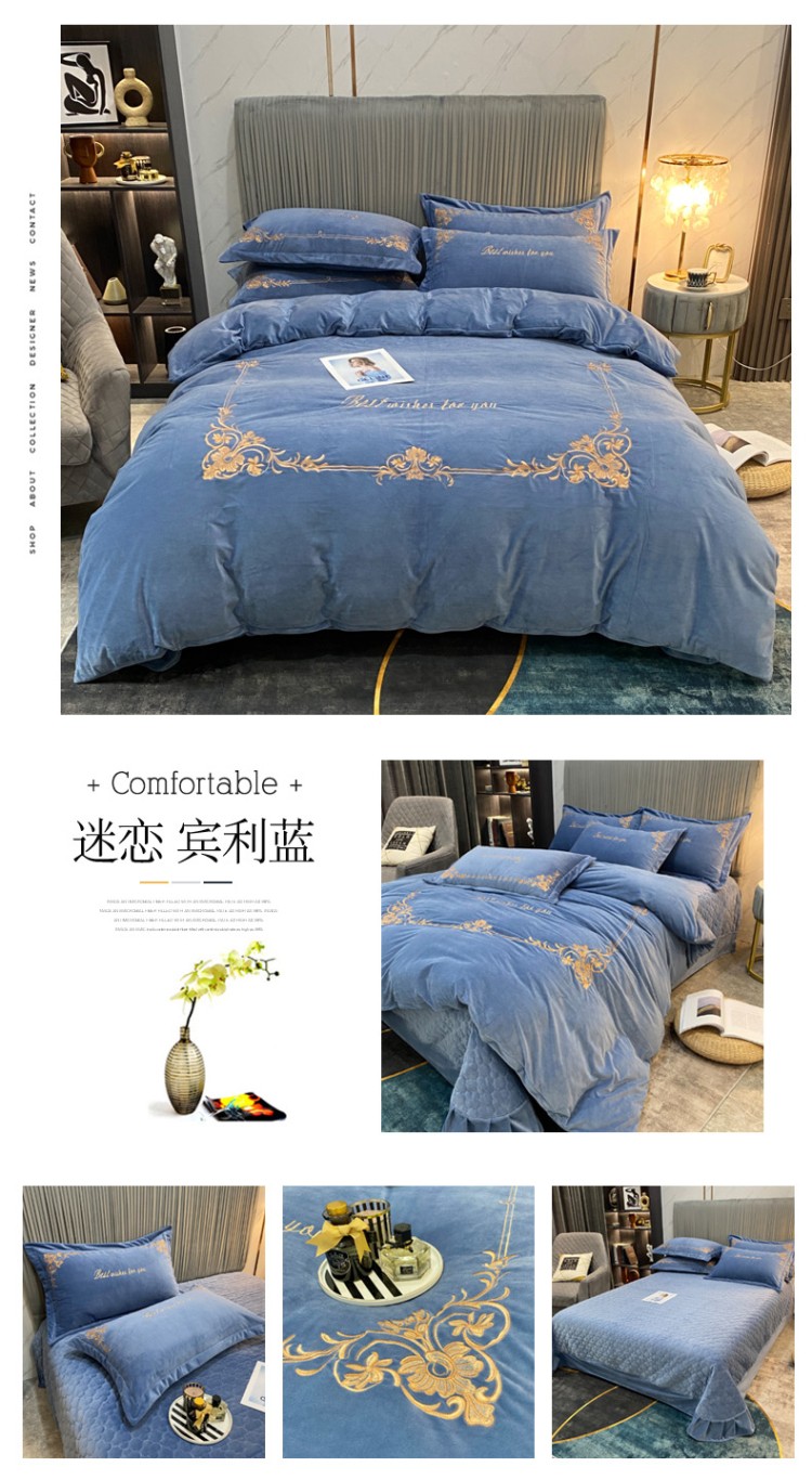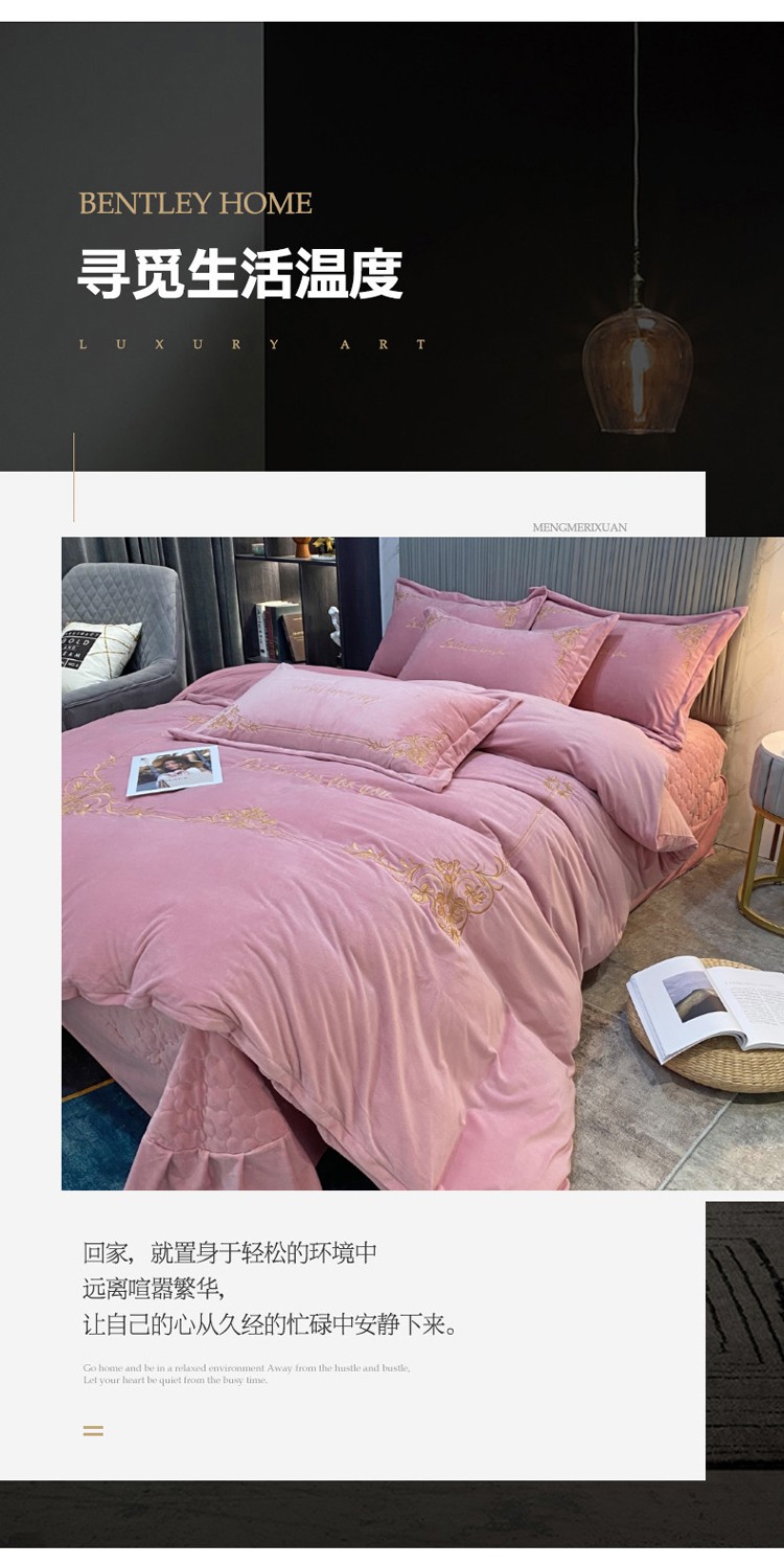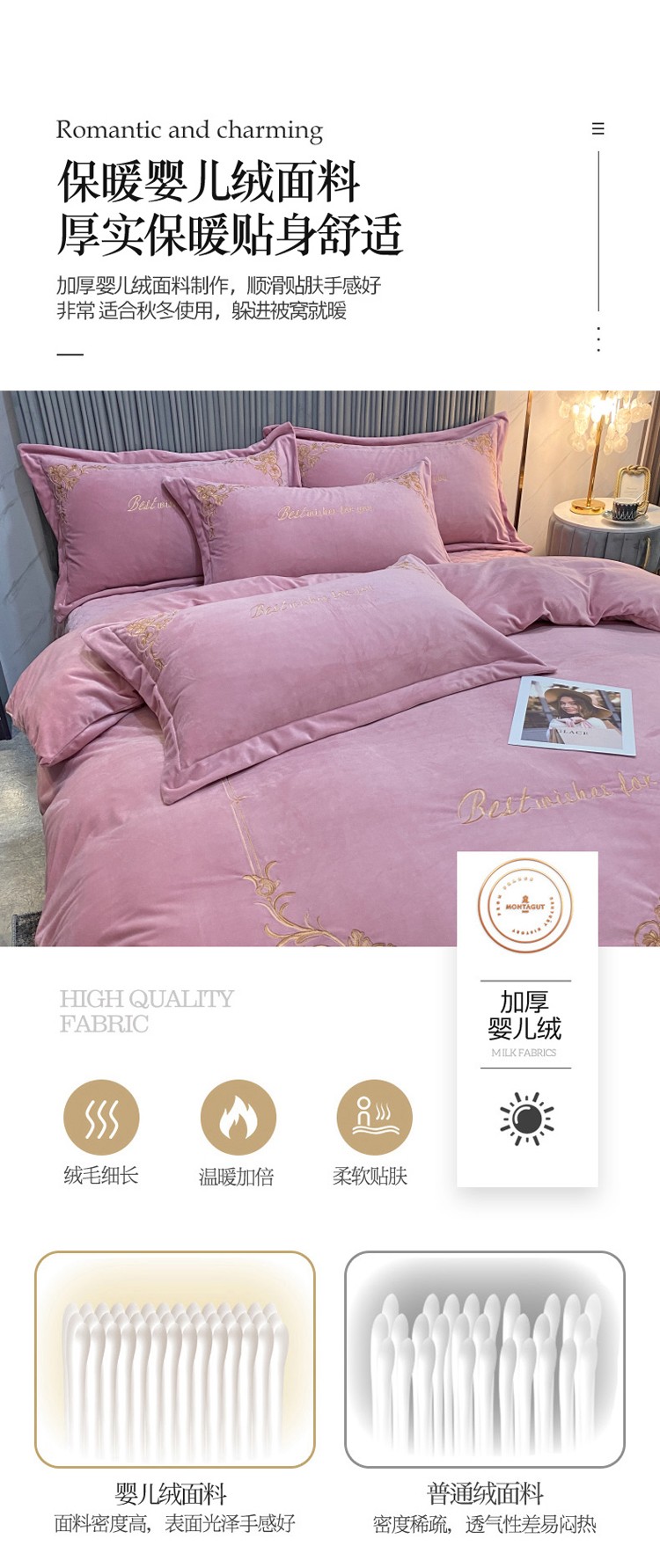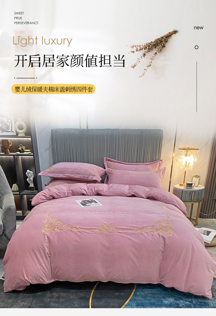 (总)星尚2021高品质婴儿绒夹棉床盖绣花四件套牛奶法莱绒