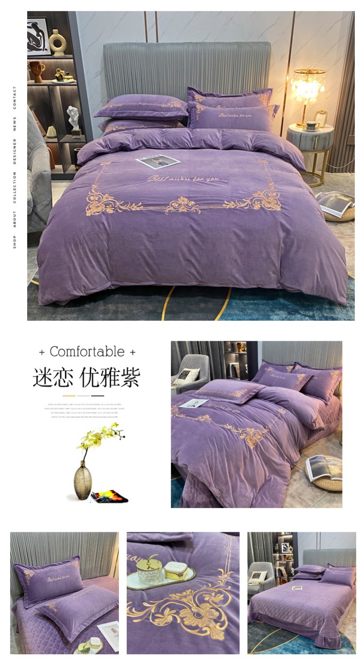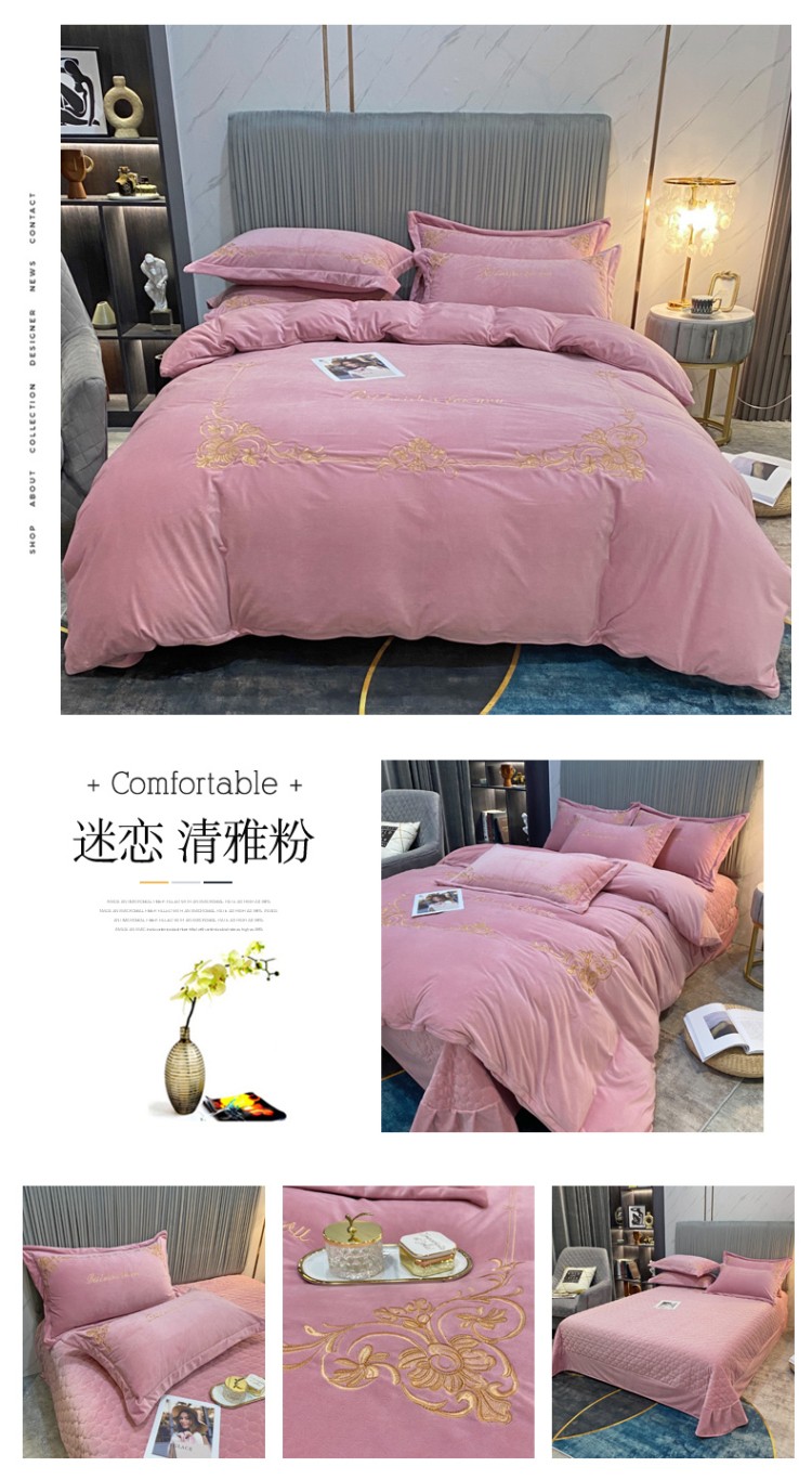 (总)星尚家纺 2024新款全消光A类230g牛奶绒韩版绣花绒四件套-绚丽花语,豆沙粉,浪漫紫,雾霾蓝,樱花粉,晨雾绿