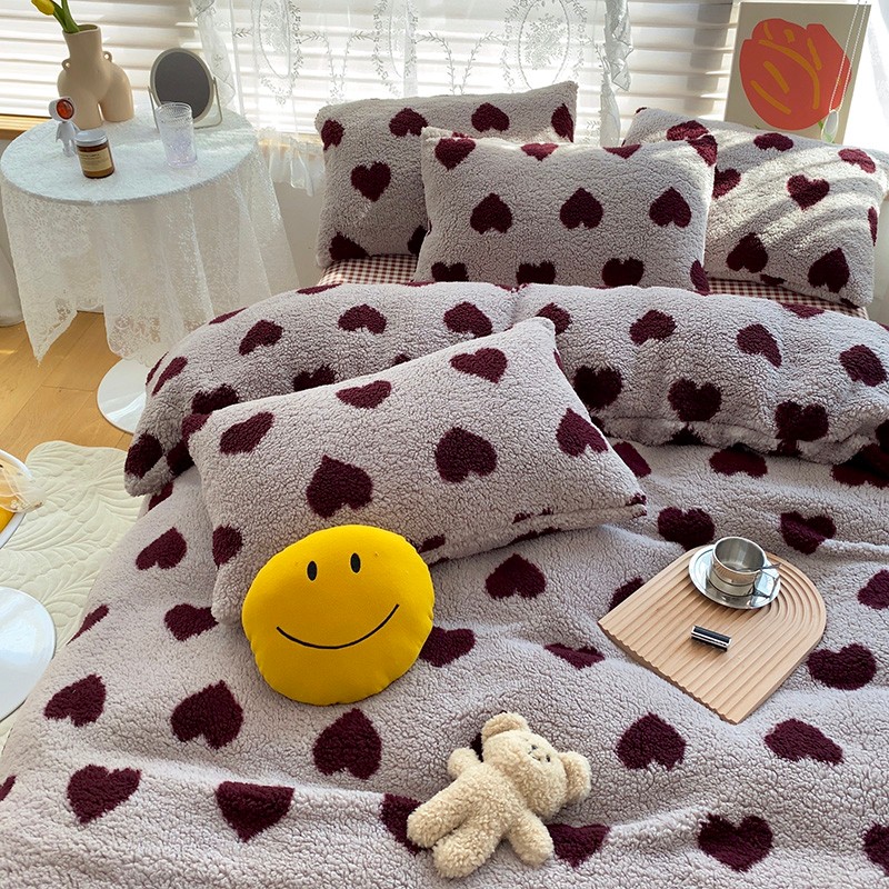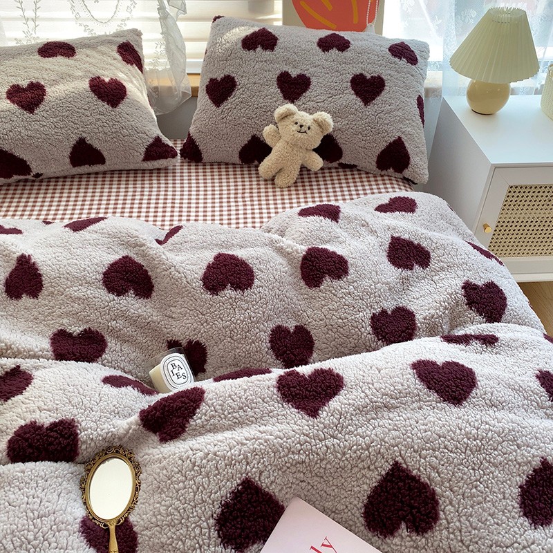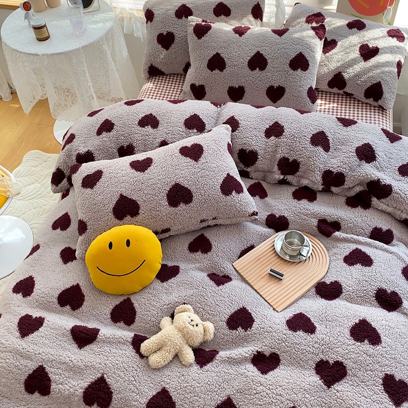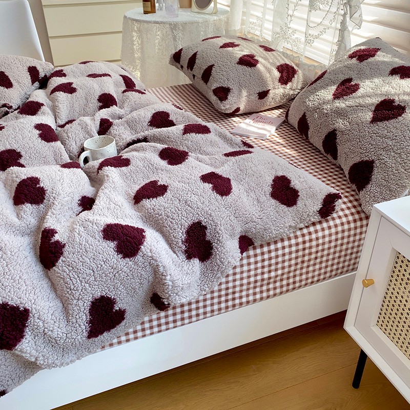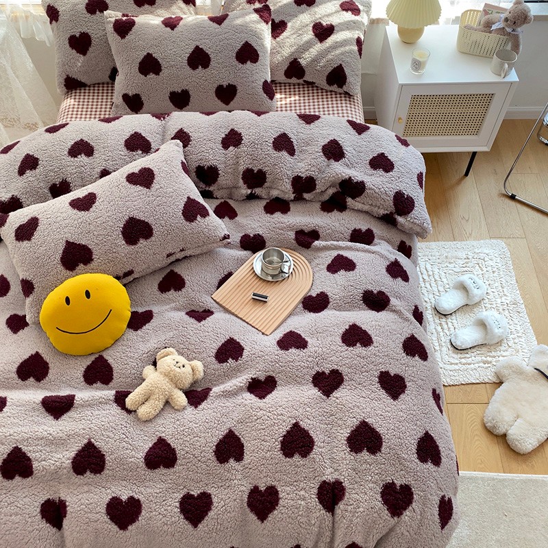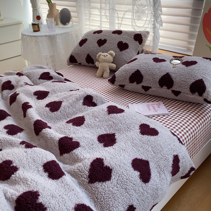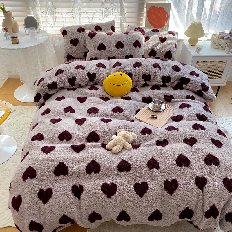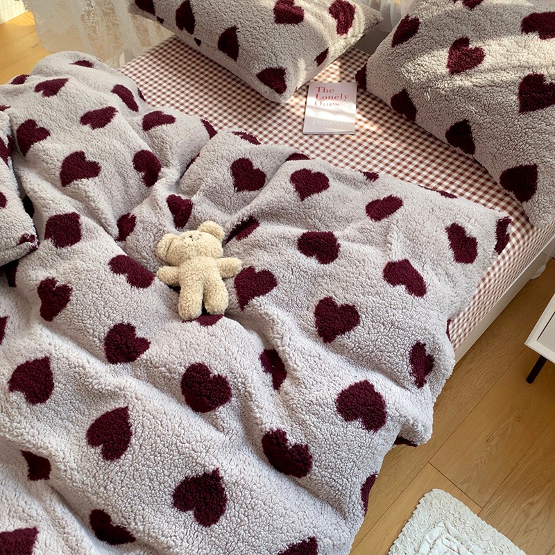三朵家纺 2021新款泰迪绒四件套 爱心咖