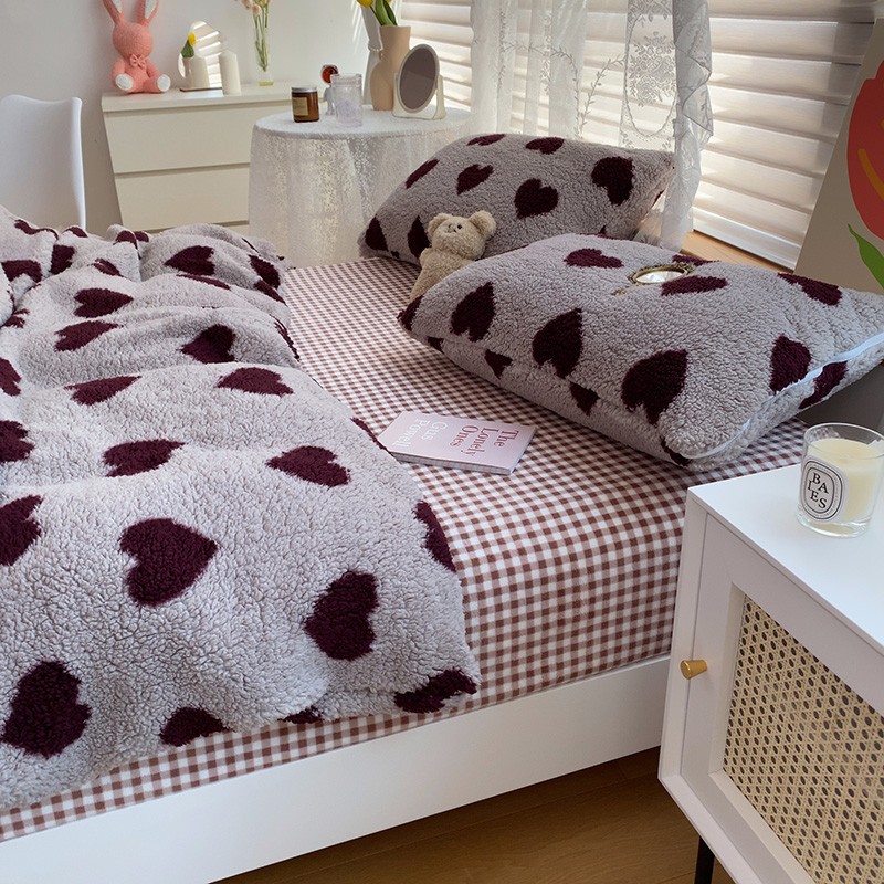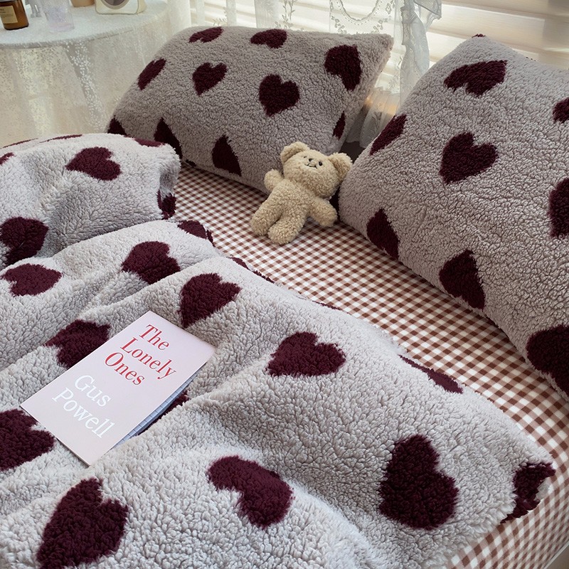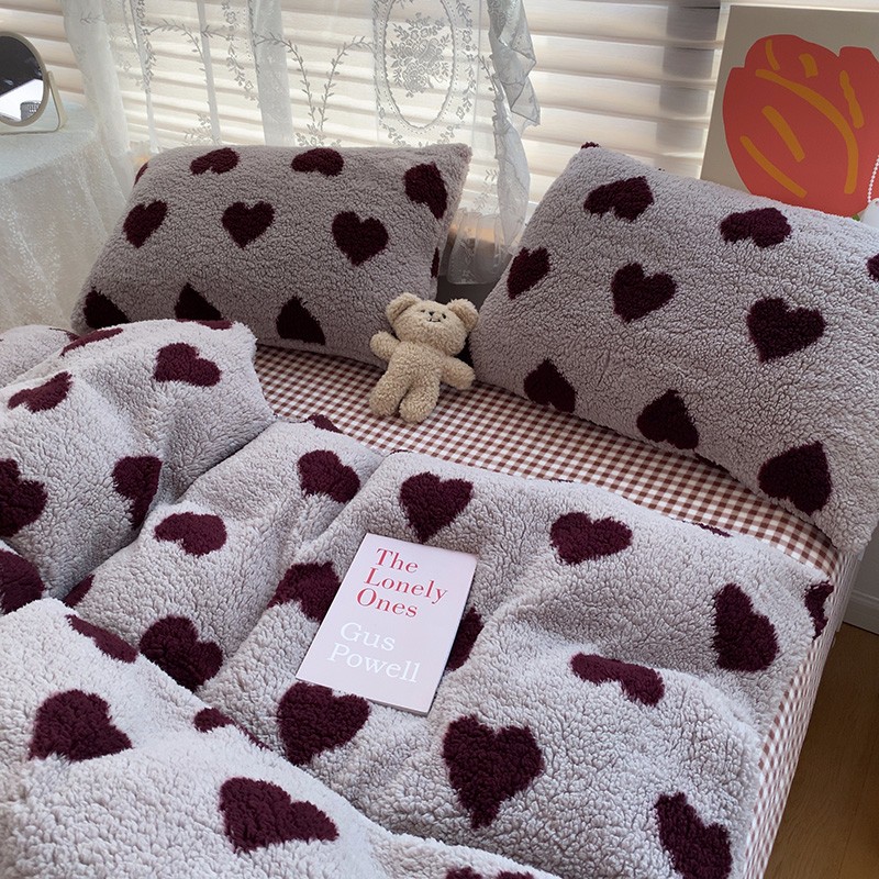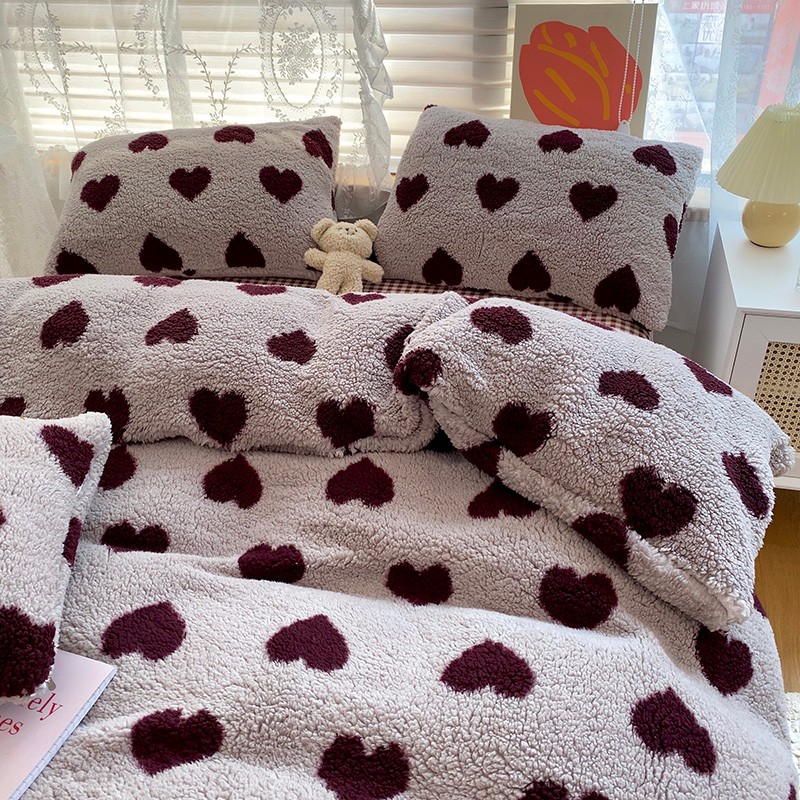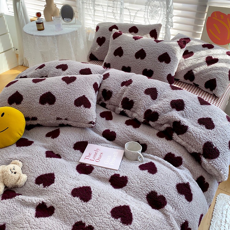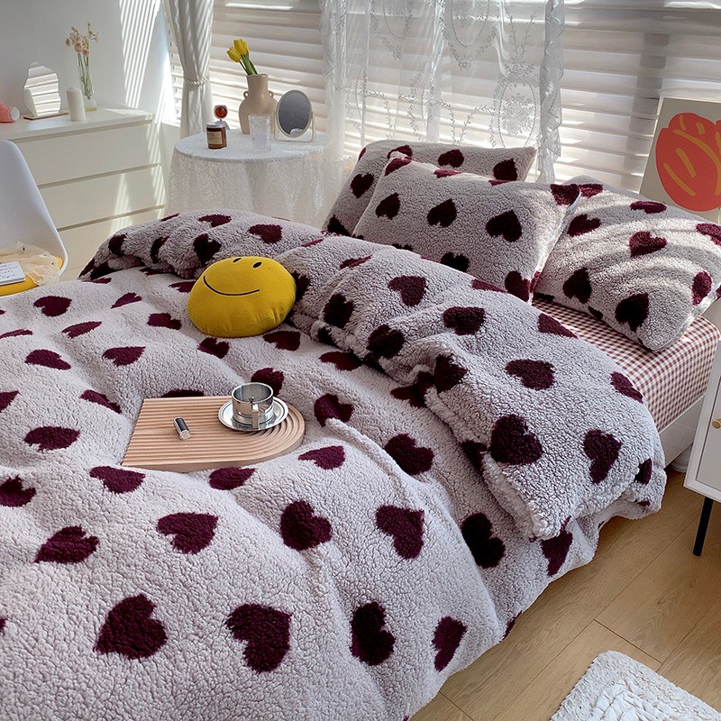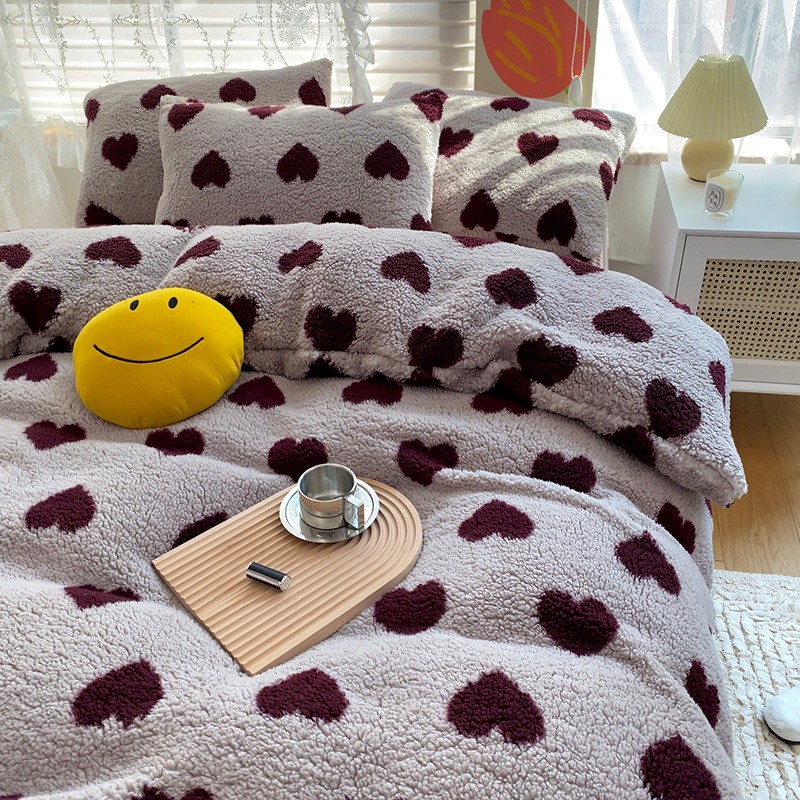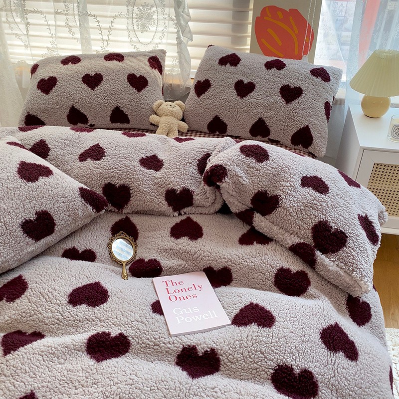 三朵家纺 2021新款泰迪绒四件套 爱心咖