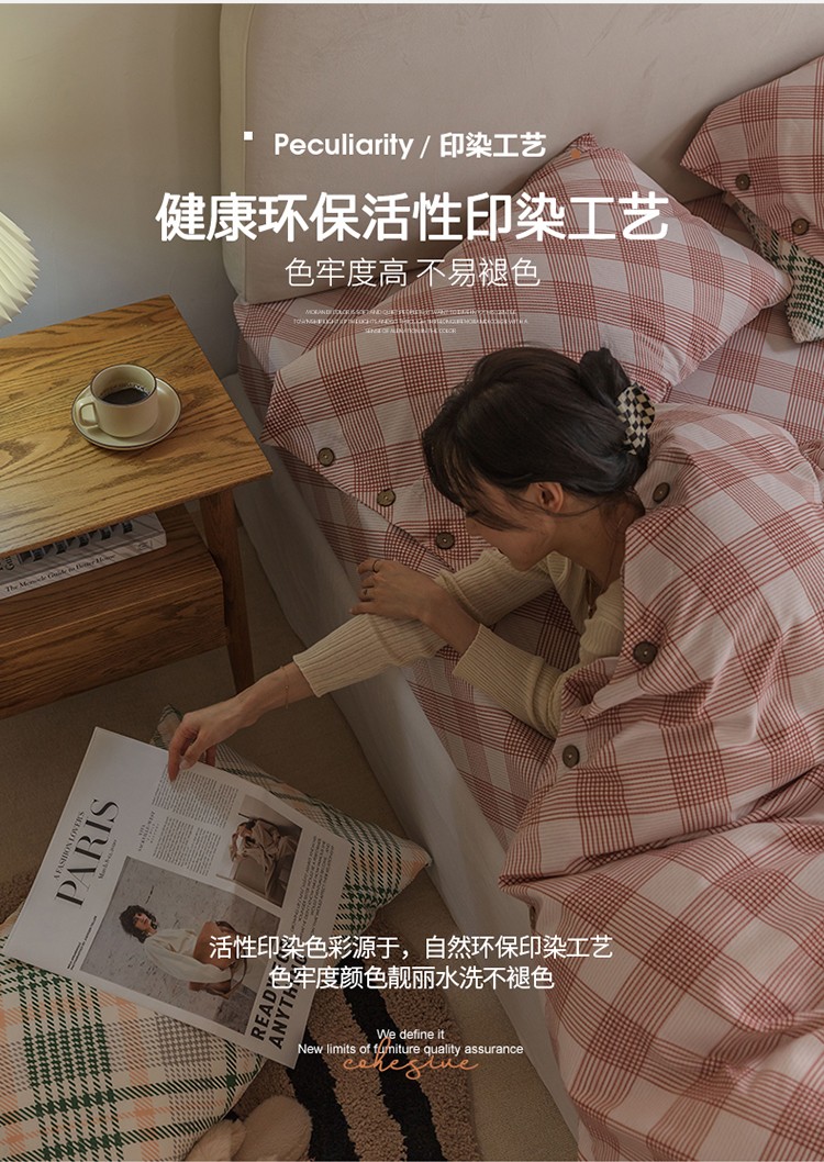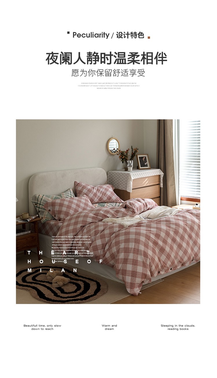 (总)寐眠 2025新款印花牛奶绒三角针贝壳款四件套,红蓝律动,黄绿森语,米韵红痕,墨格独白,暖黄千鸟,桃粉千鸟,雾灰千鸟,棕格时光