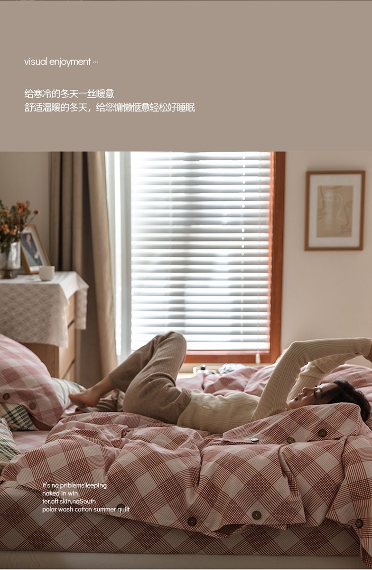 (总)寐眠 2023新款全棉色织水洗棉儿童夏被,粉大格,粉小格,灰白格,蓝大格,蓝小格,雾蓝格,小粉格
