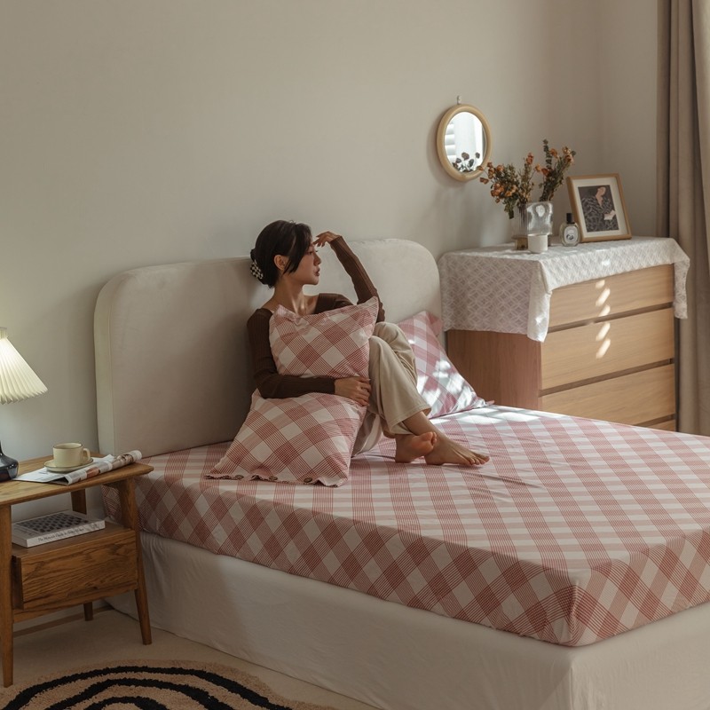商品名称:寐眠 2021新款全棉磨毛印花床笠 遇见-豆蔻粉