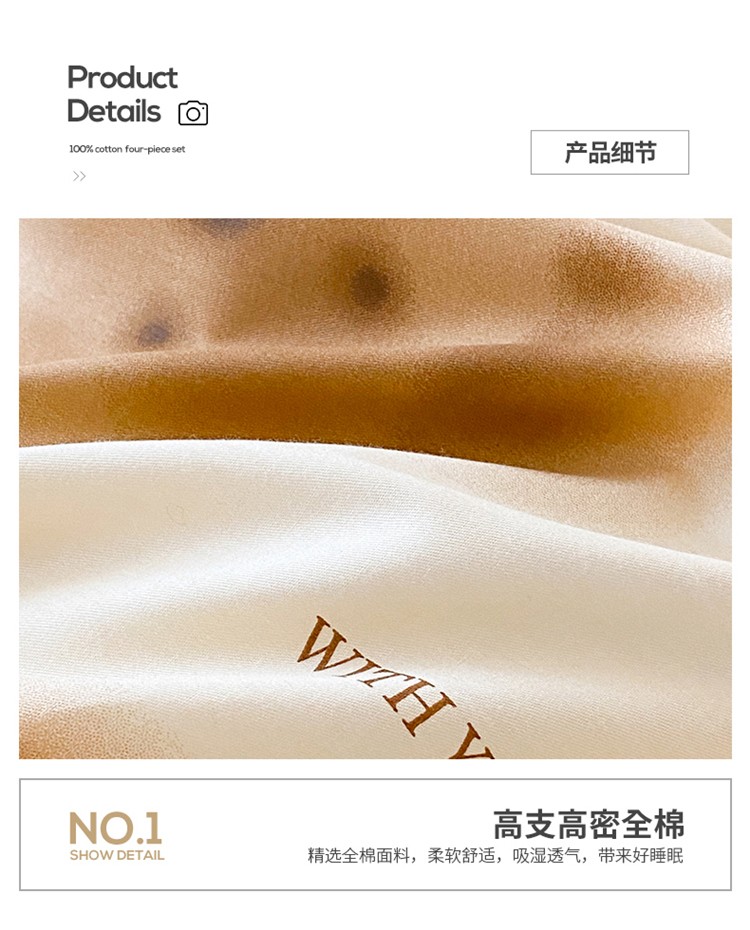 (总)窝米 2025新款数码印花100支长绒棉纯棉工艺花边款四件套-晚意,晚意