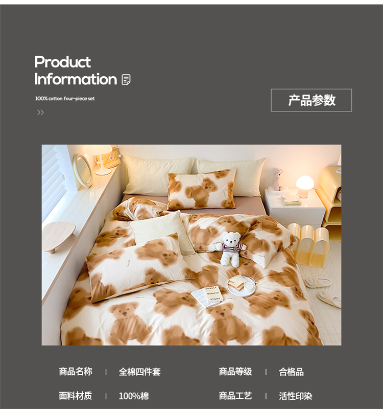 商品名称:窝米 2022春季新品全棉四件套 晴晴熊