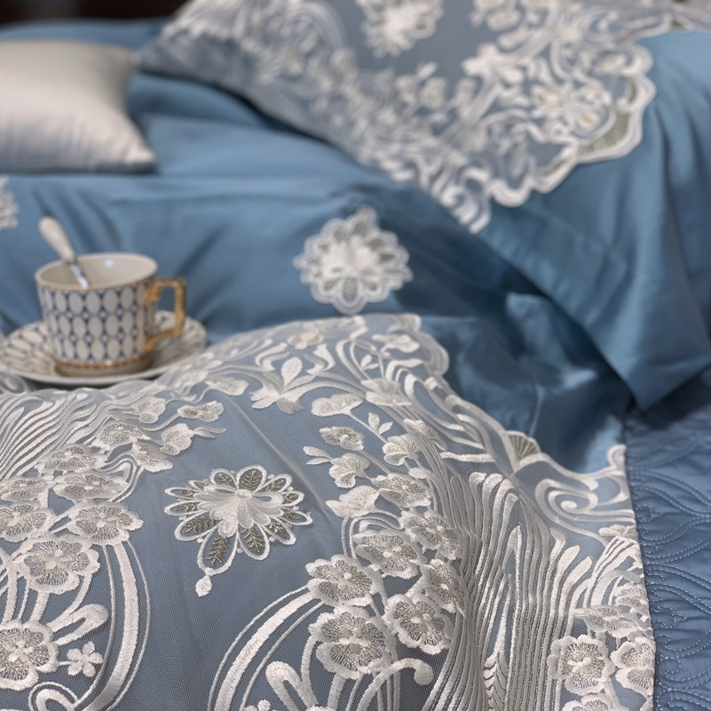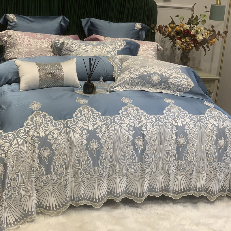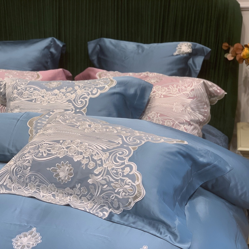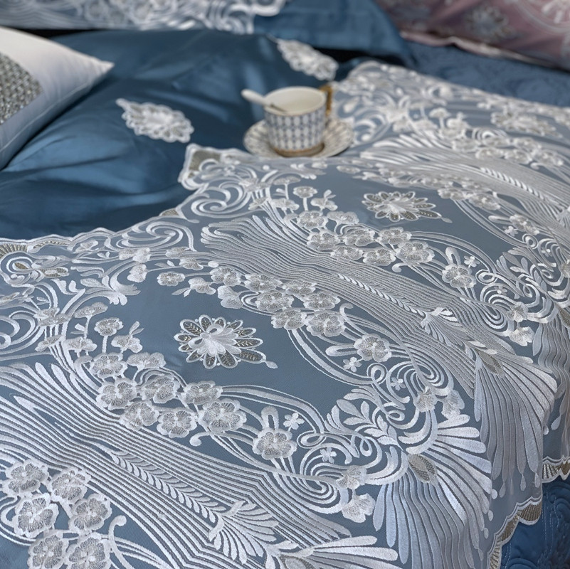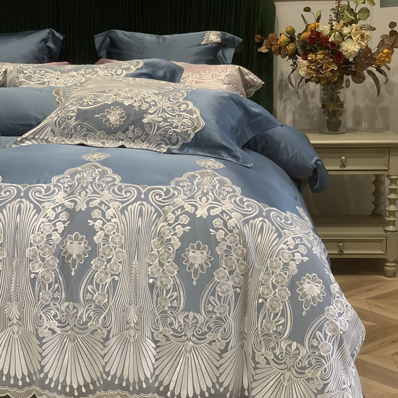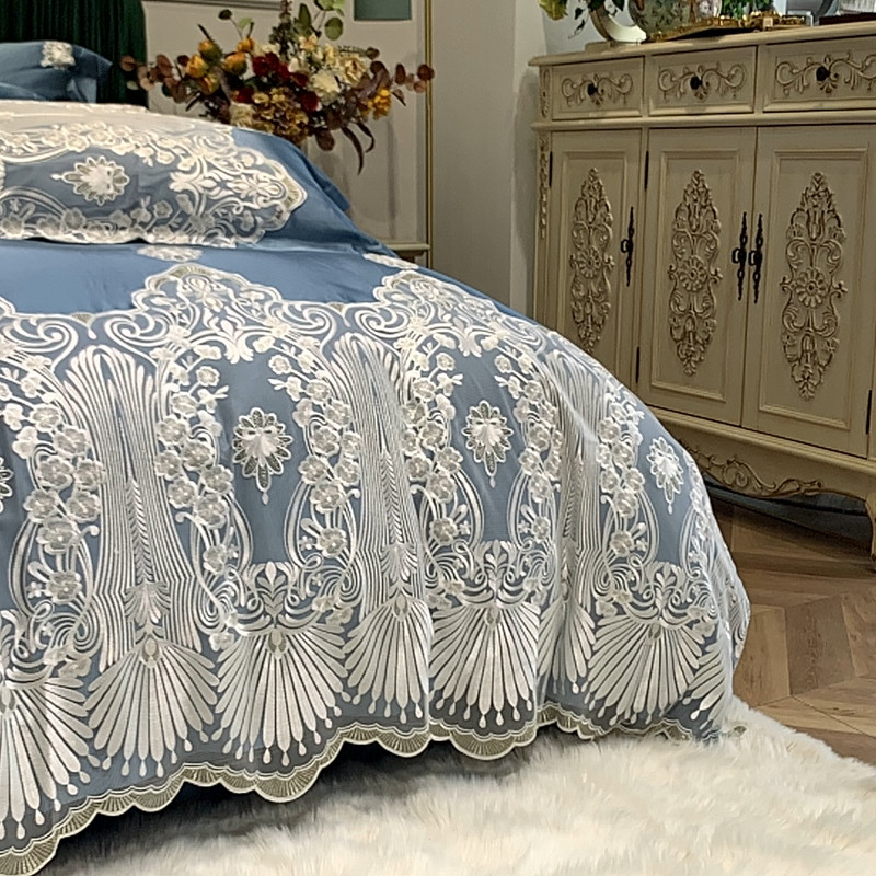 (总)2024新款高端蕾丝重磅真丝棉系列四件套-爱兰朵,爱兰朵豆沙,爱兰朵蓝,爱兰朵香槟,爱兰朵炫彩绿