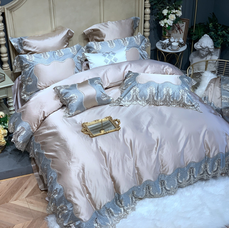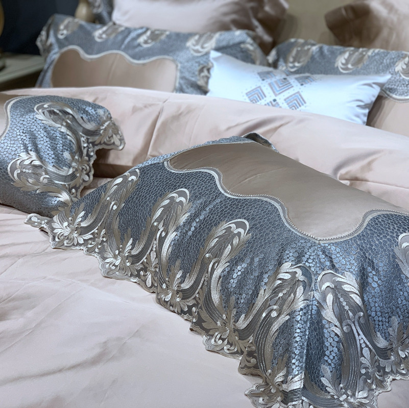 (总)2024新款高端蕾丝重磅真丝棉系列四件套-德鲁斯,德鲁斯 浅粉,德鲁斯 浅灰,德鲁斯 浅绿,德鲁斯 香槟,德鲁斯 紫薇