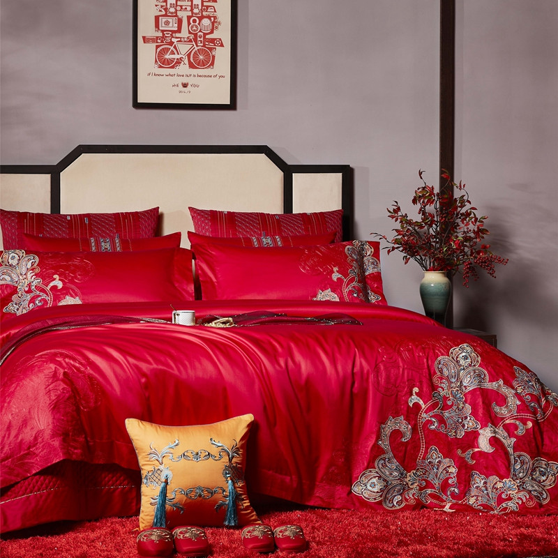 商品名称:缔缦 2022新款60s长绒棉婚庆四件套 织云绣霞