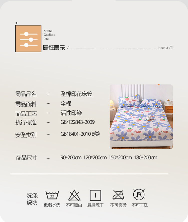 商品名称:名兮 2022新款纯棉印花床笠 小确幸