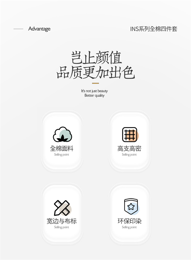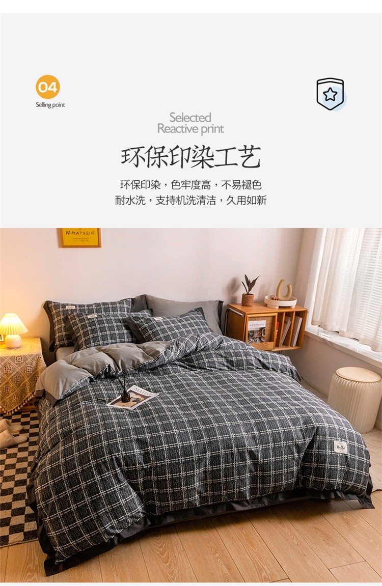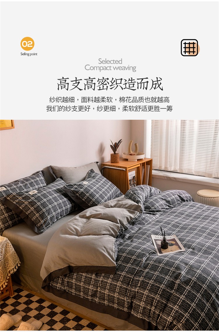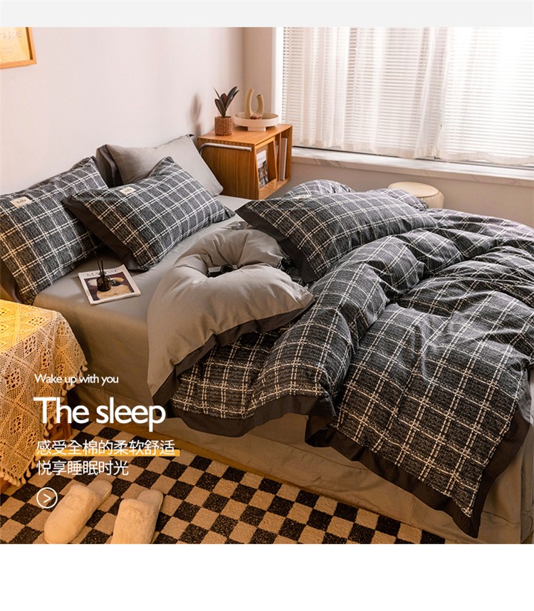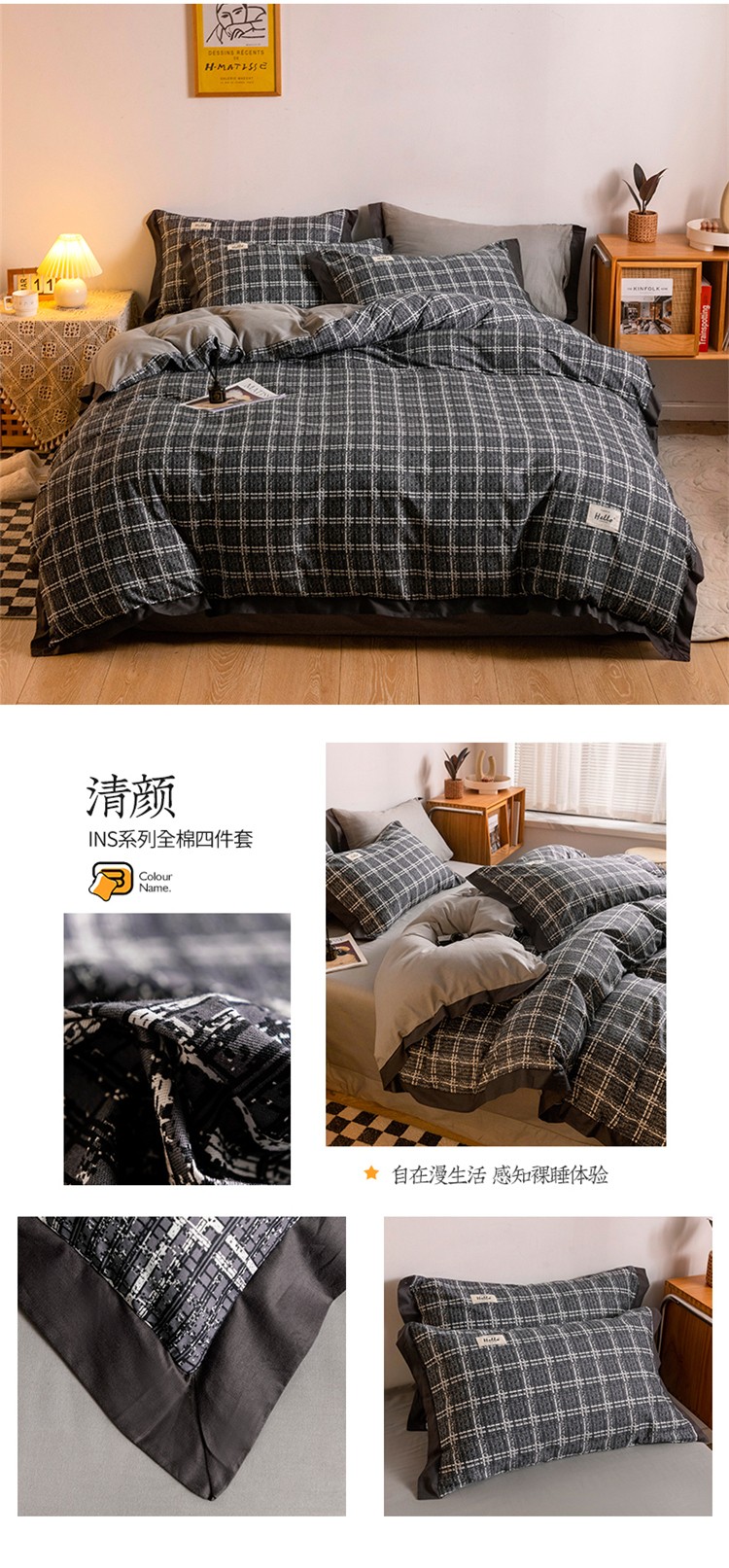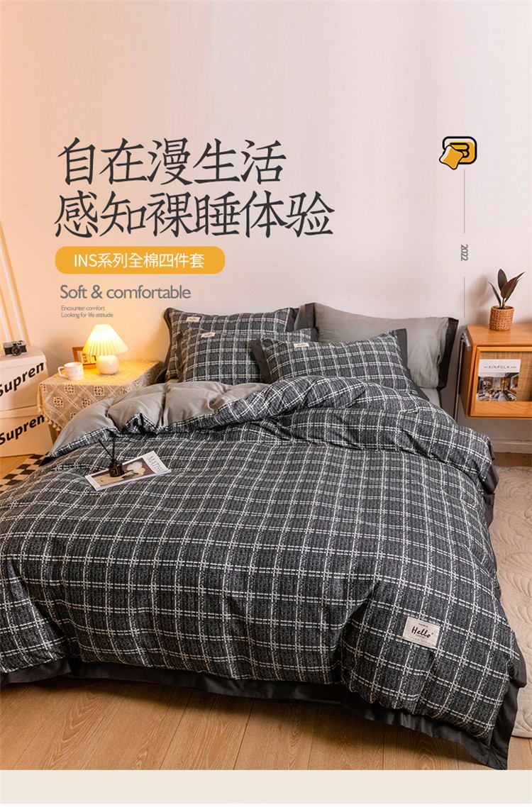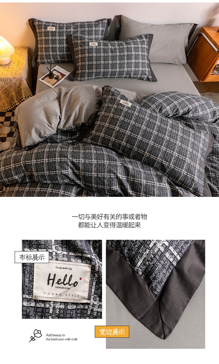 商品名称:花言狐语2025新款全棉色布13372拼角工艺款四件套 清颜