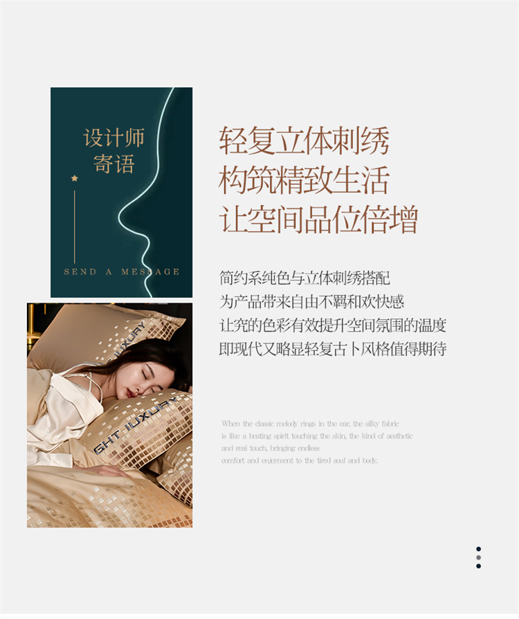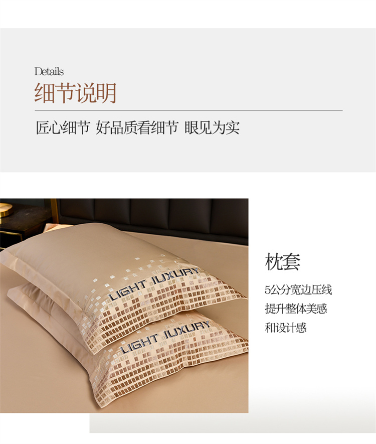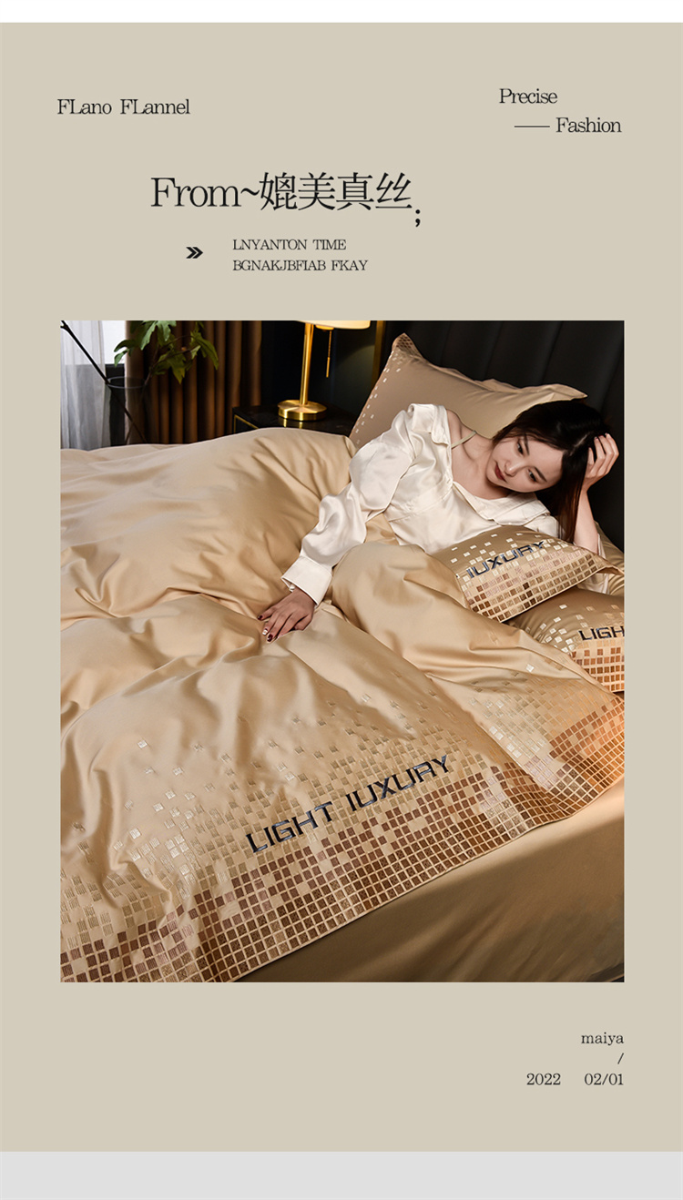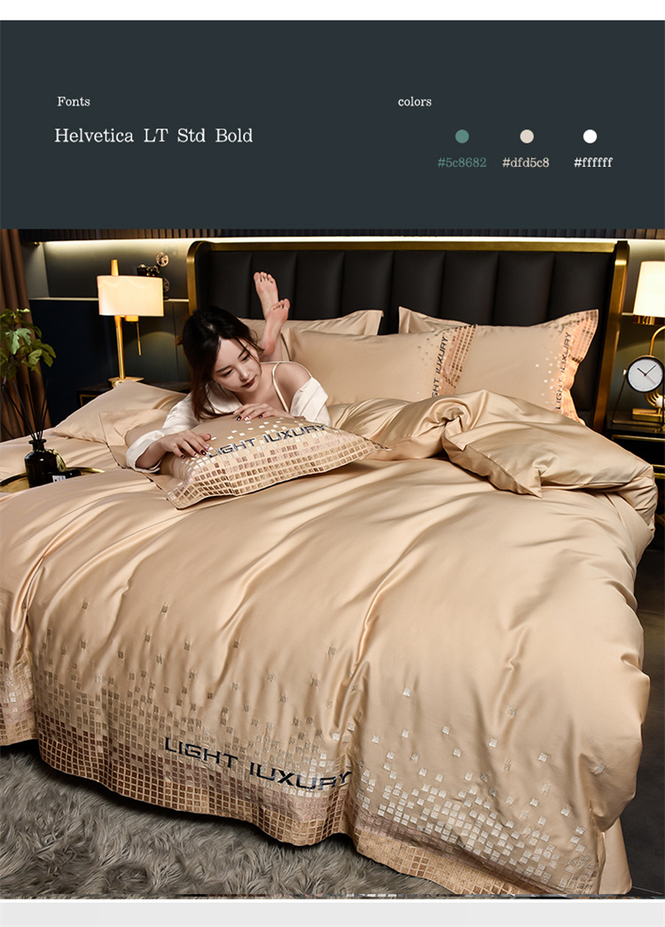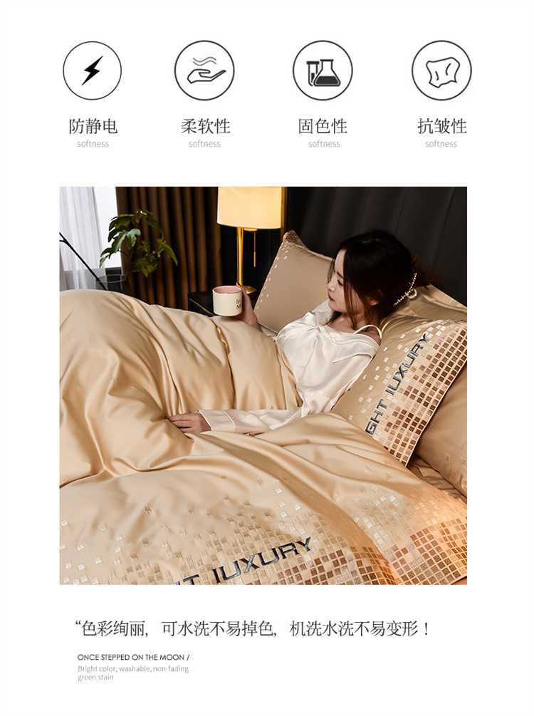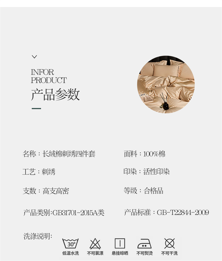 当前位置: 91家纺网 > 商品网购 > 床品套件 > 四件套 > 长绒棉四件套 > 米奈 2024新款A类100S长绒棉刺绣四件套有质检报告-戴纳香槟金