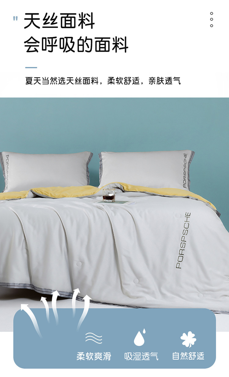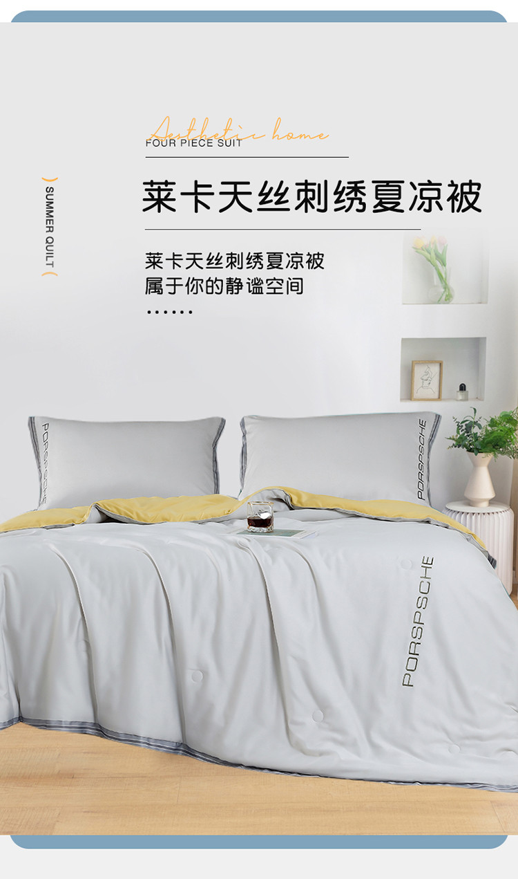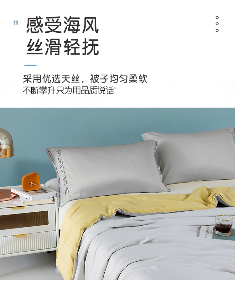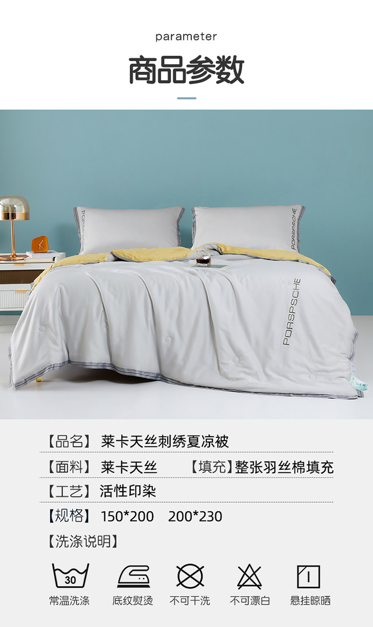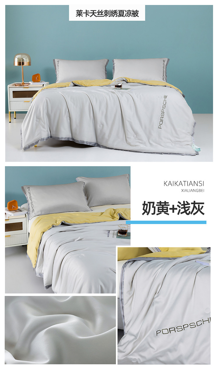 商品名称:梦镜 2025新款莱卡天丝刺绣夏凉被 奶黄+浅灰