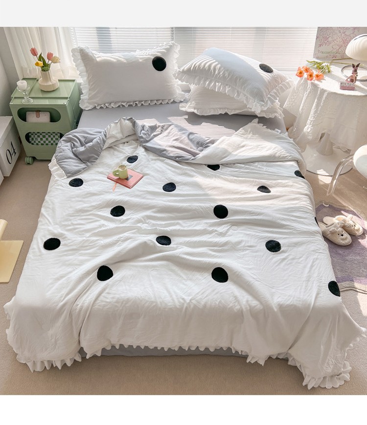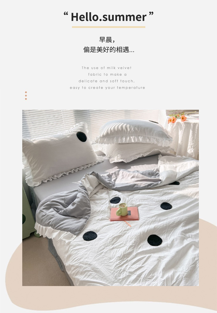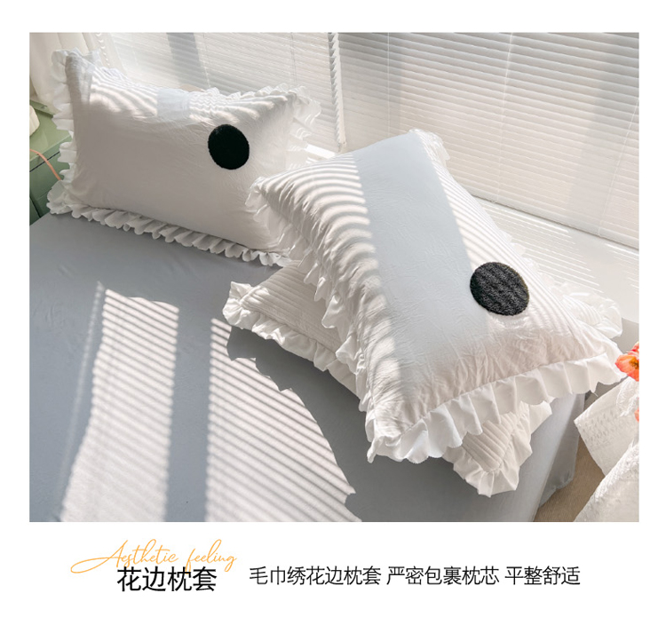 沐慕 2022新款毛巾绣洛卡棉夏被四件套 圆圈-白色