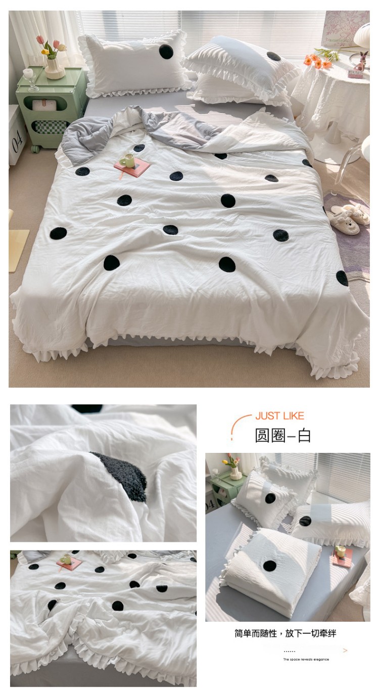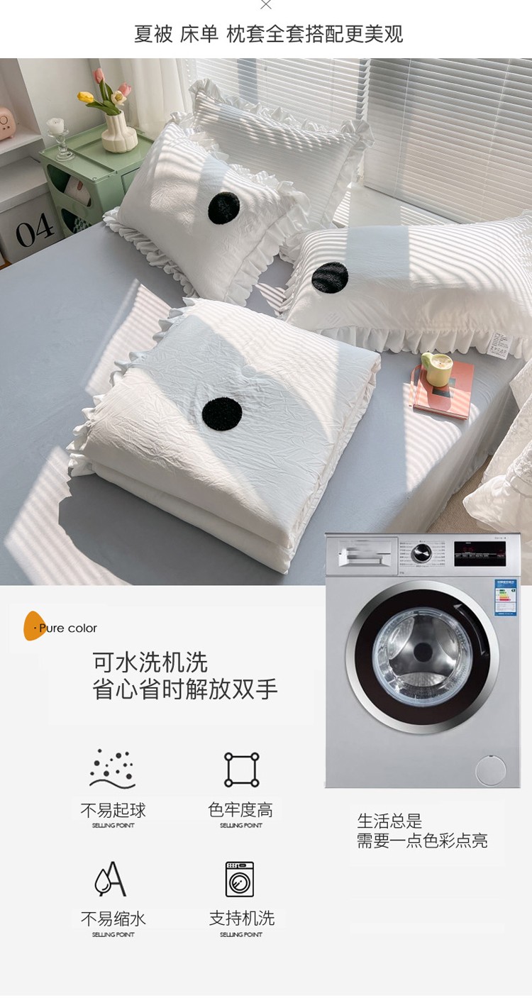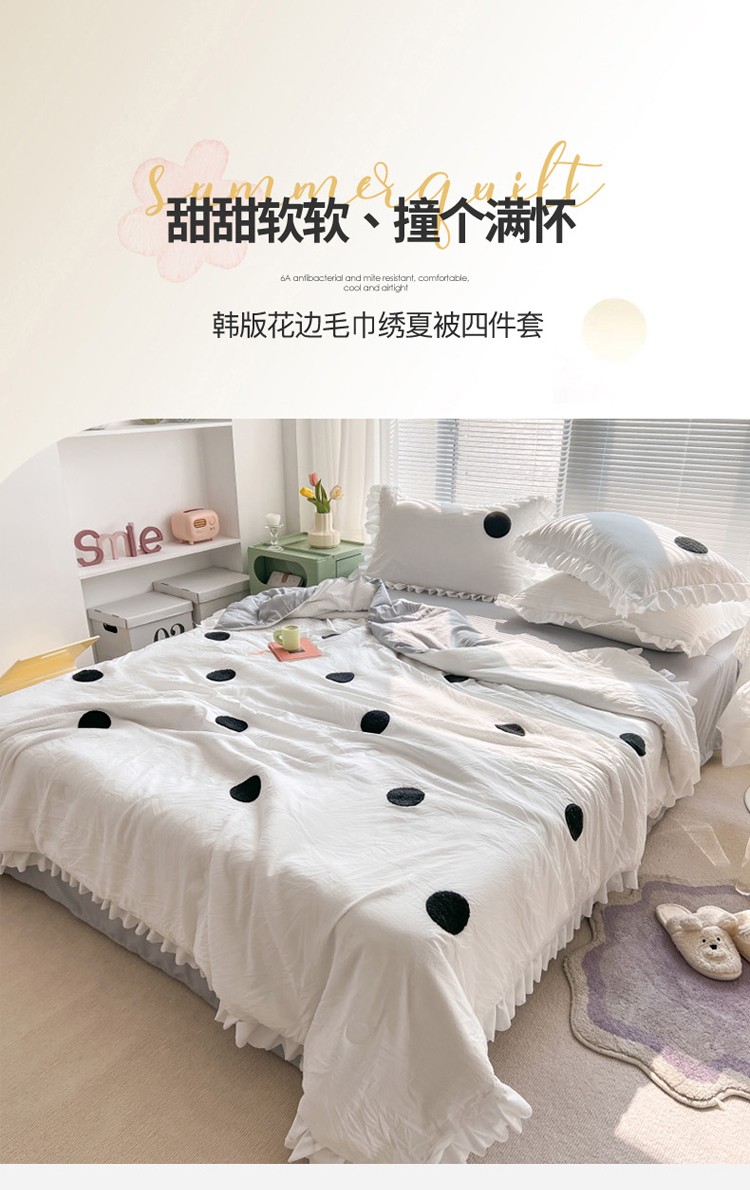 商品名称:沐慕 2022新款毛巾绣洛卡棉夏被四件套 圆圈-白色