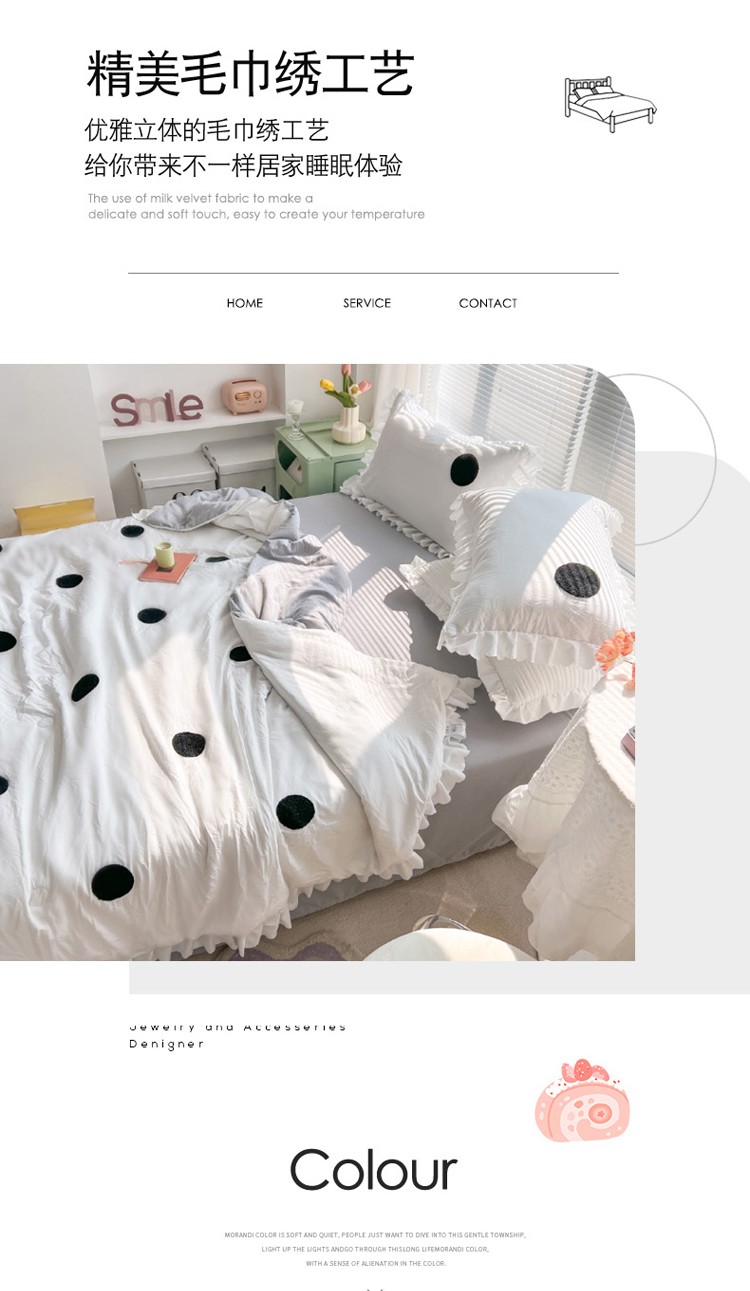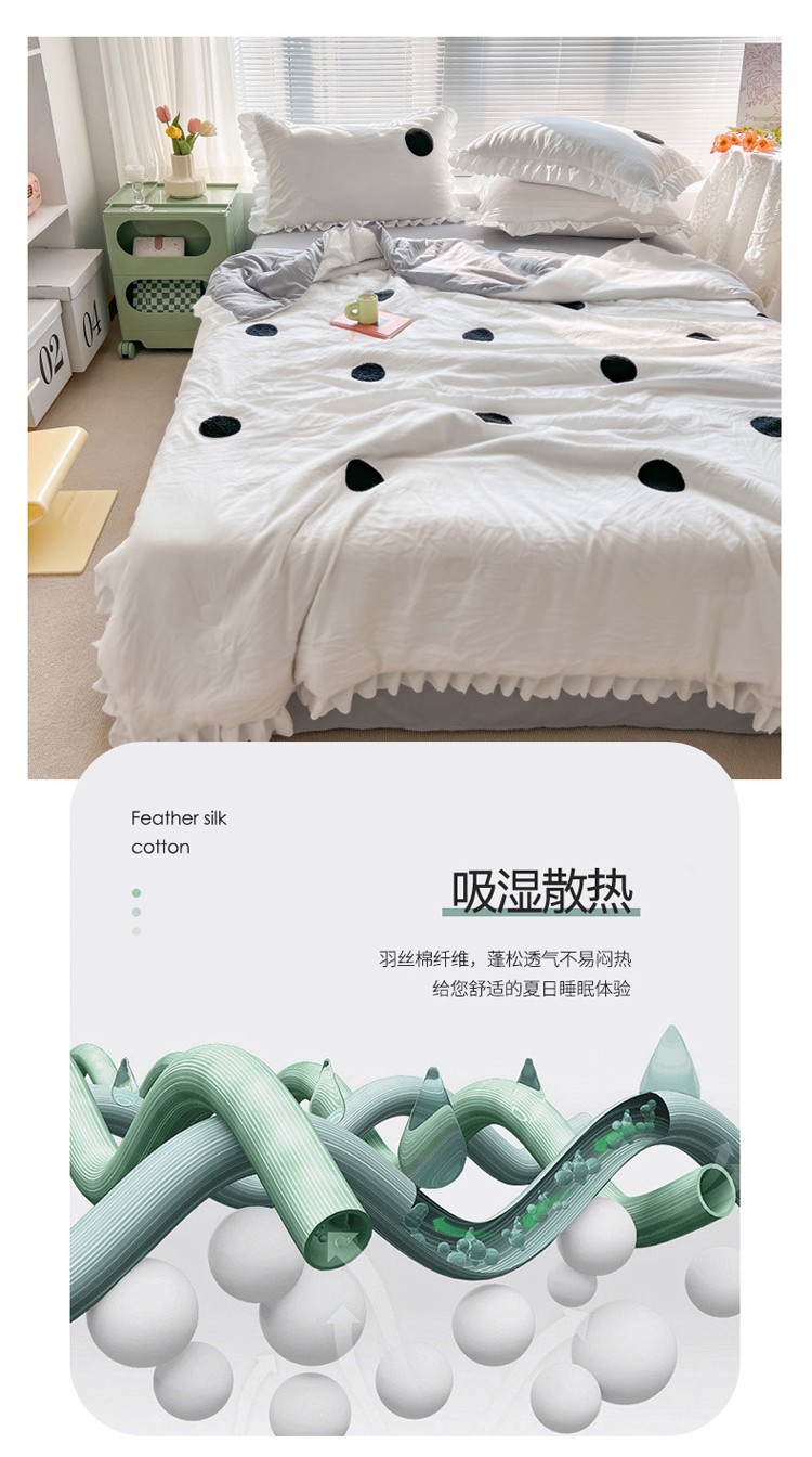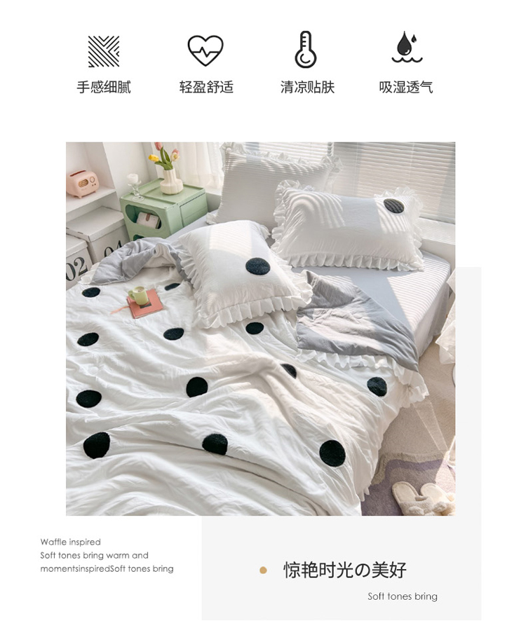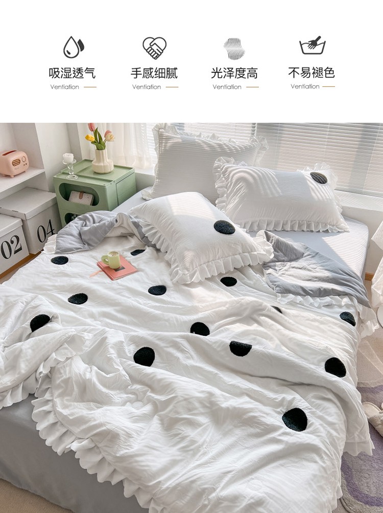商品名称:沐慕 2022新款毛巾绣洛卡棉夏被四件套 圆圈-白色