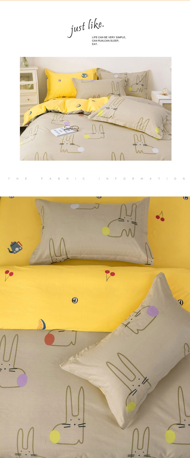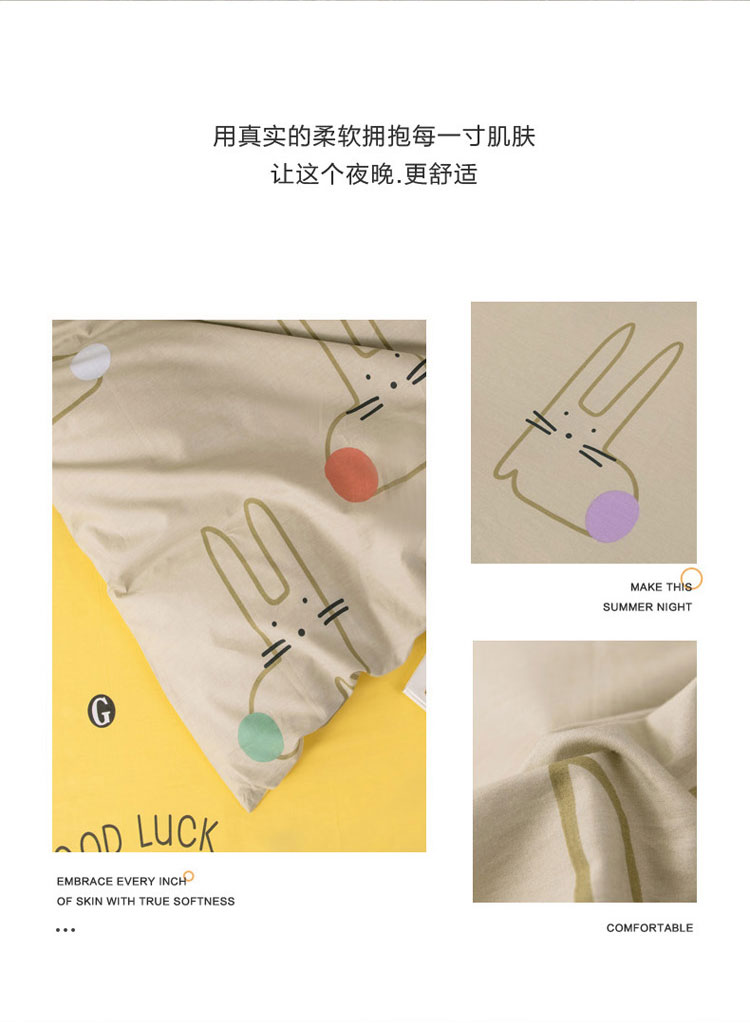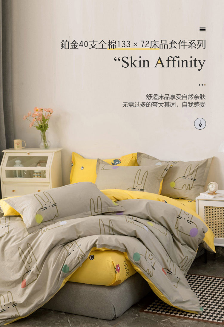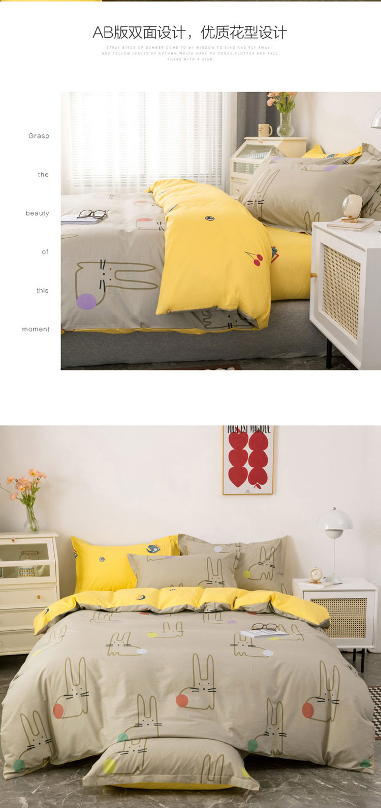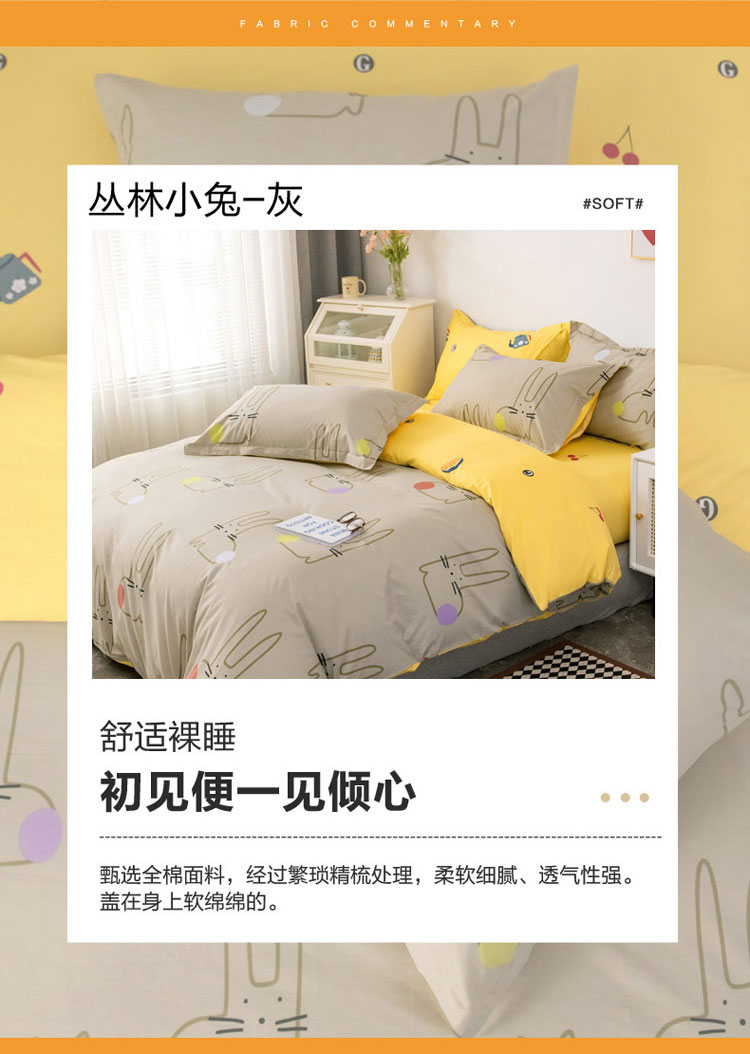 商品名称:星期三 2022新款铂金全棉13372四件套(加老板微信有会员价) 丛林小兔-灰
