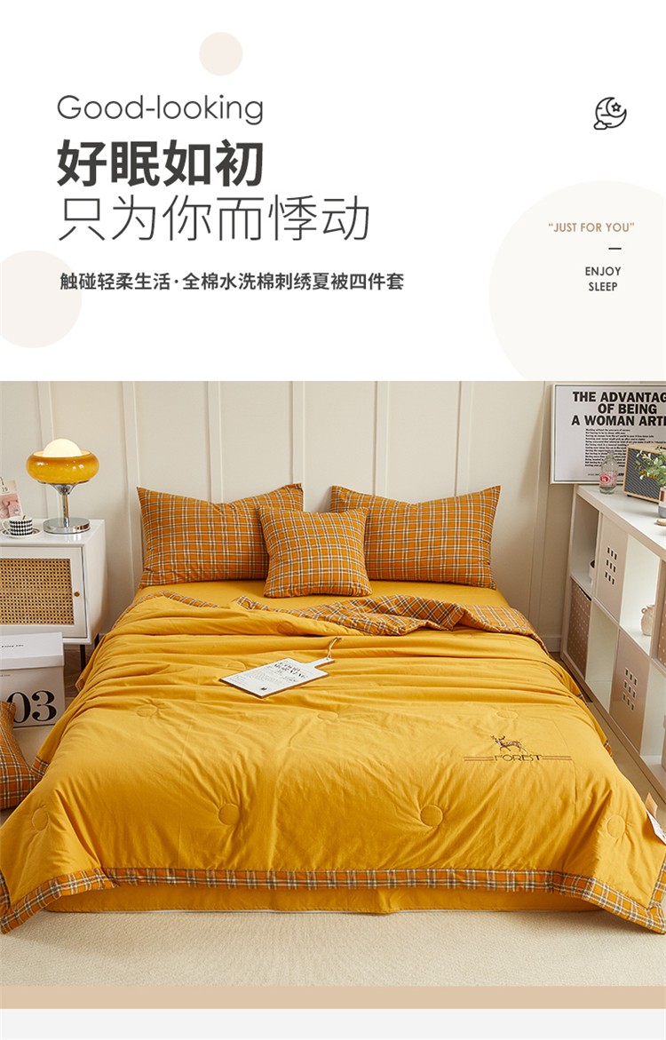 当前位置: 91家纺网 > 商品网购 > 床品套件 > 四件套 > 水洗棉四件套 > 翰轩 2022新款A类全棉色织水洗棉绣花大豆夏被四件套夏凉被 卡罗