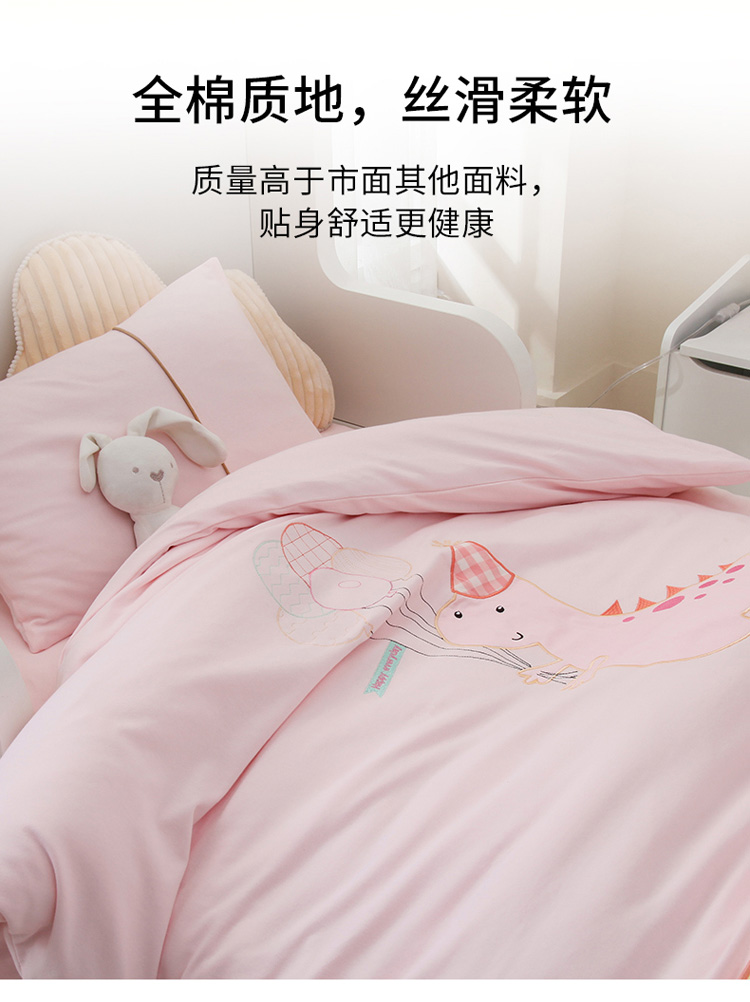 商品名称:喜多兔 2022新款全棉针织三件套床品套件-神奇伙伴 粉色汽球恐龙