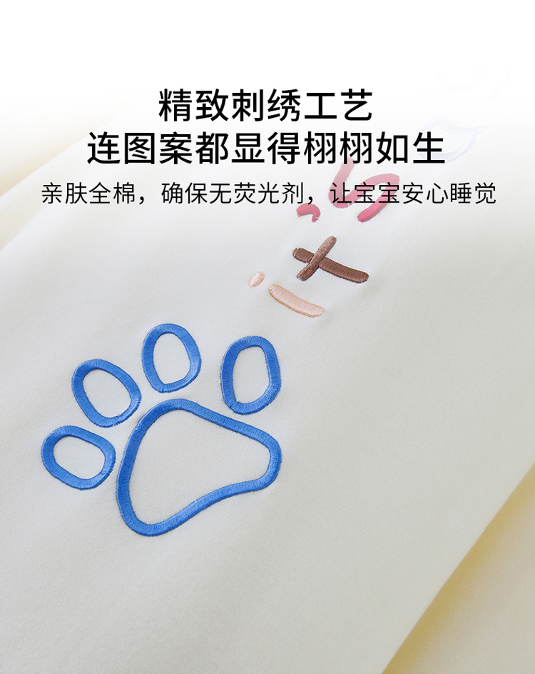 (总)喜多兔儿童家纺 2025新款萌宝系列40S纯棉夏季睡袋防踢被,豆沙色小猫甜甜,粉色小兔妞妞,湖蓝色小狮子芯芯,黄色长颈鹿萌萌,卡其色小老虎多多,蓝色小象问问,绿色小恐龙亮亮,绿色小牛宝宝