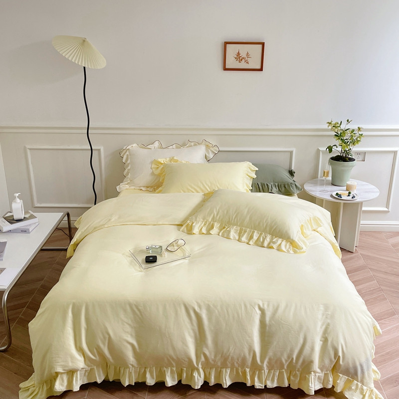 当前位置: 91家纺网 > 商品网购 > 床品套件 > 四件套 > 水洗棉四件套 > 时年 2022新款60长绒棉水洗轻磨毛花边款四件套 芝士黄