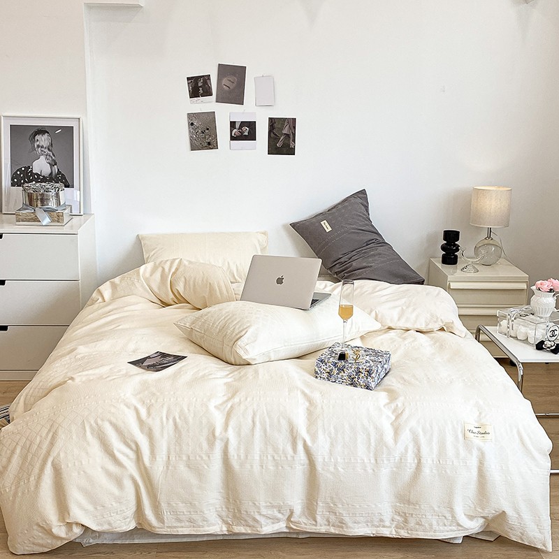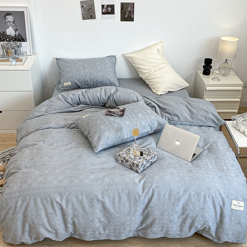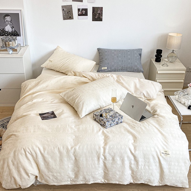 (总)昔可 2022新款60支水洗棉华夫格提花四件套拍法一