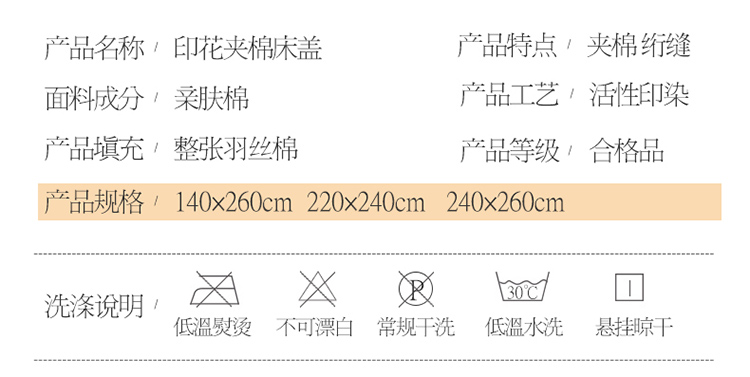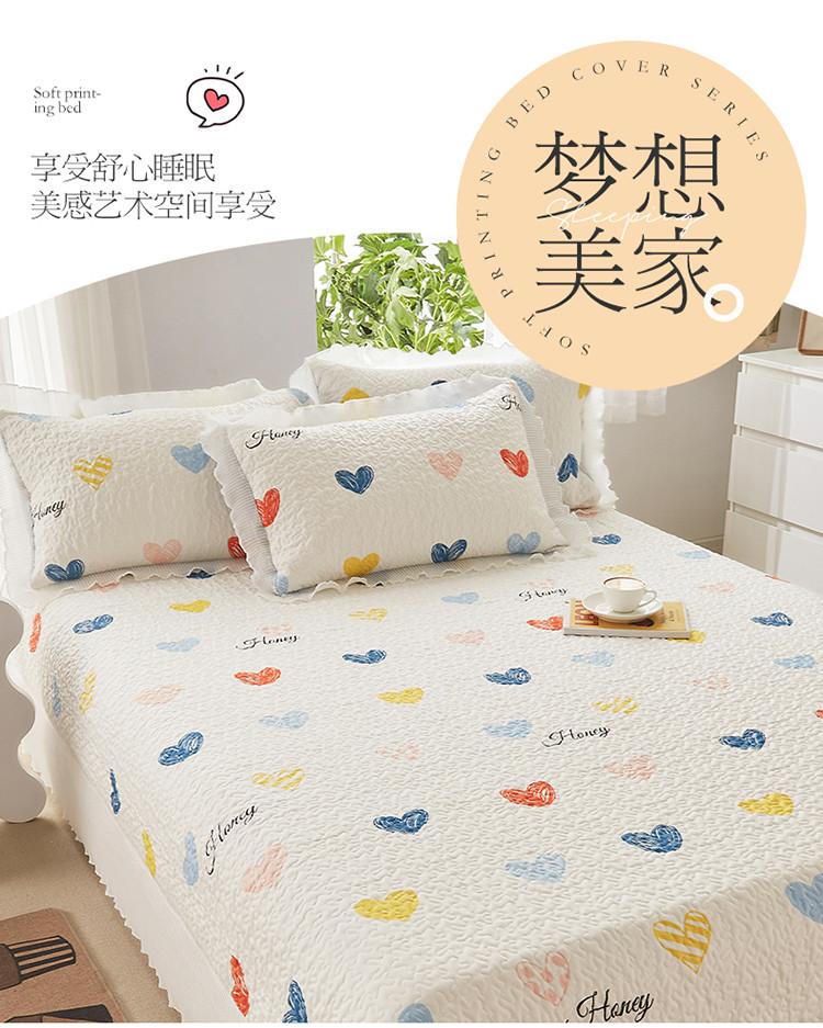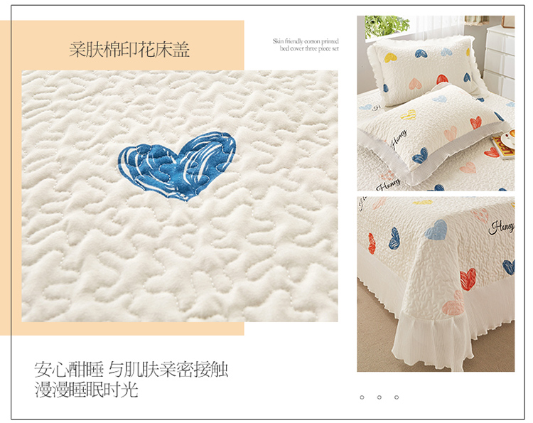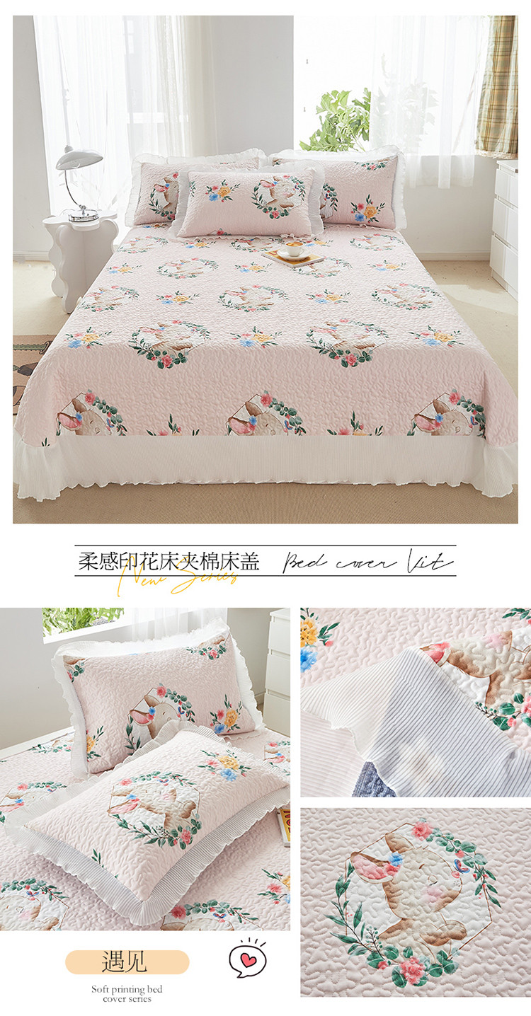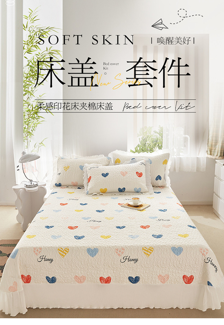 商品名称:(总)艾晶美家纺 2022新款磨毛印花夹棉床盖三件套