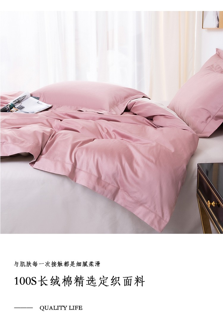 网客 2024新款100支长绒棉四件套 双拼-粉