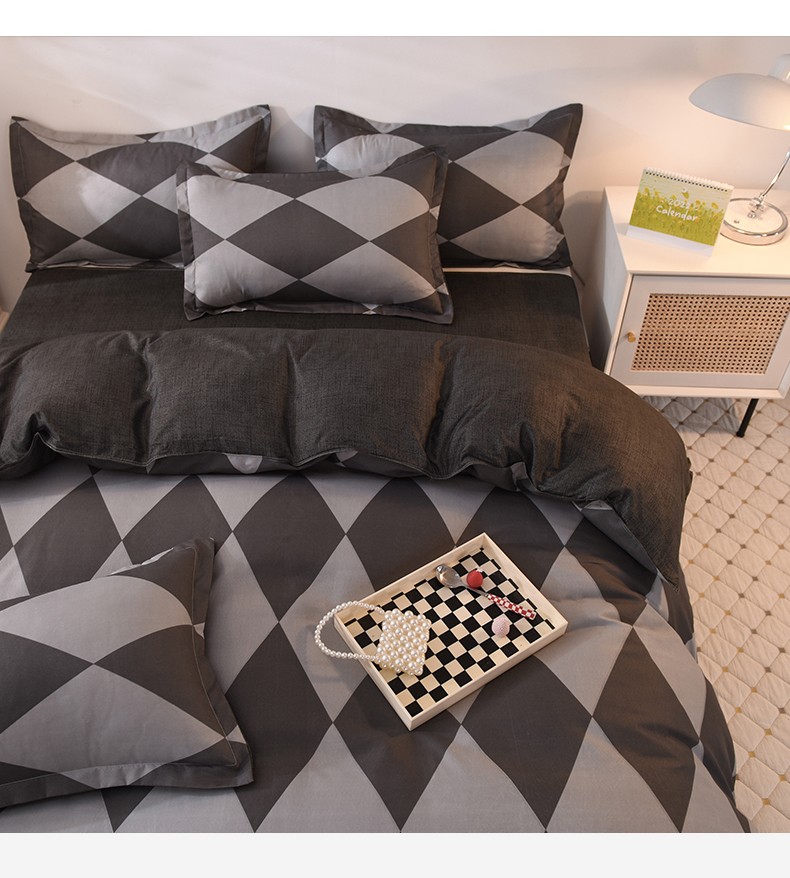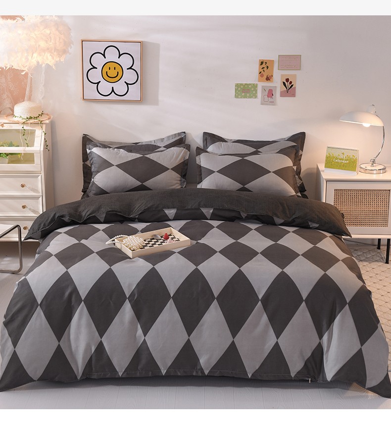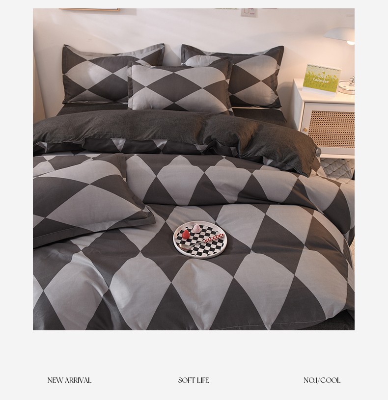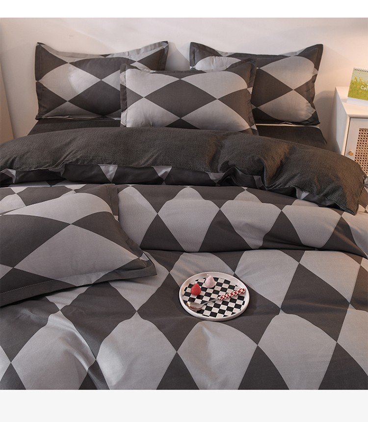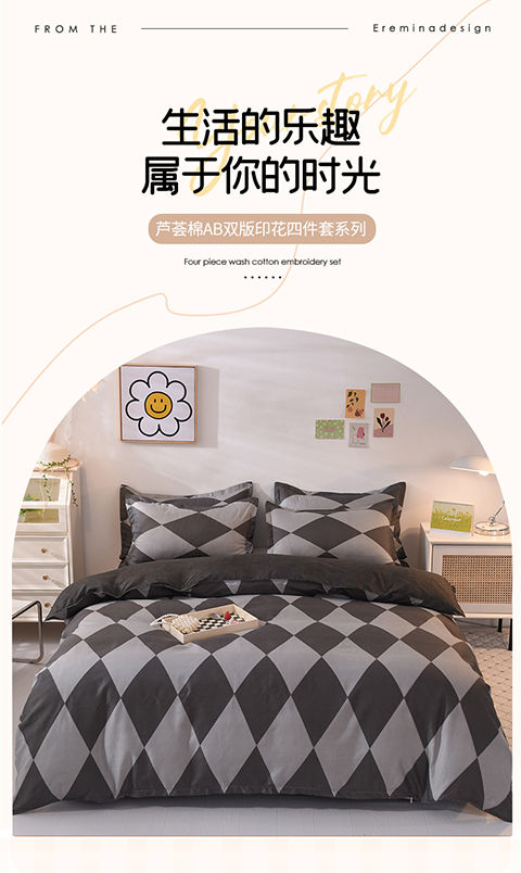 妖妖家纺 2023新款芦荟棉AB双版印花四件套 菱形格灰