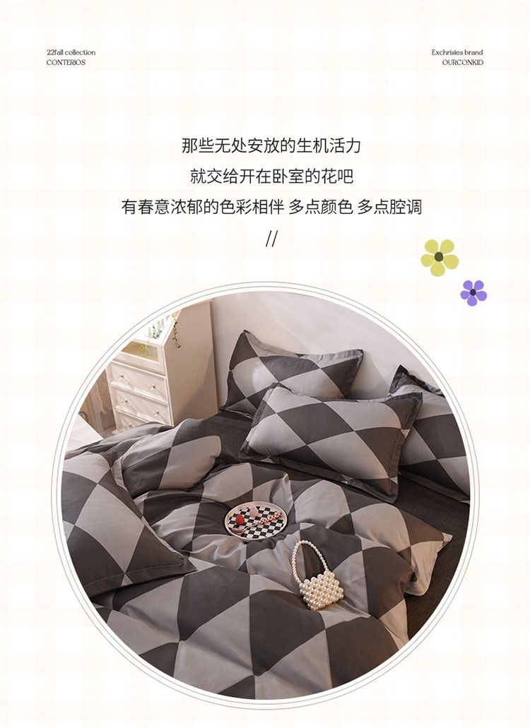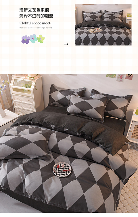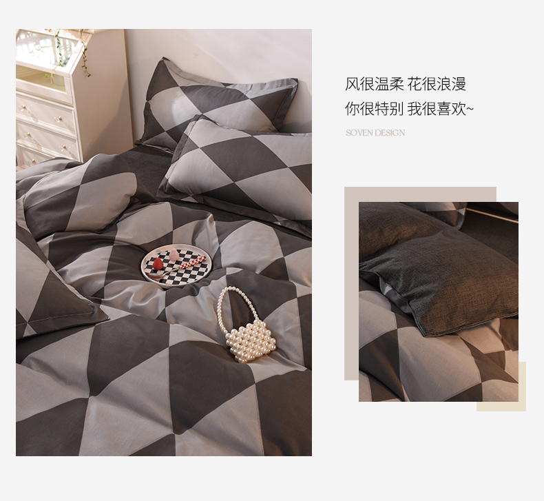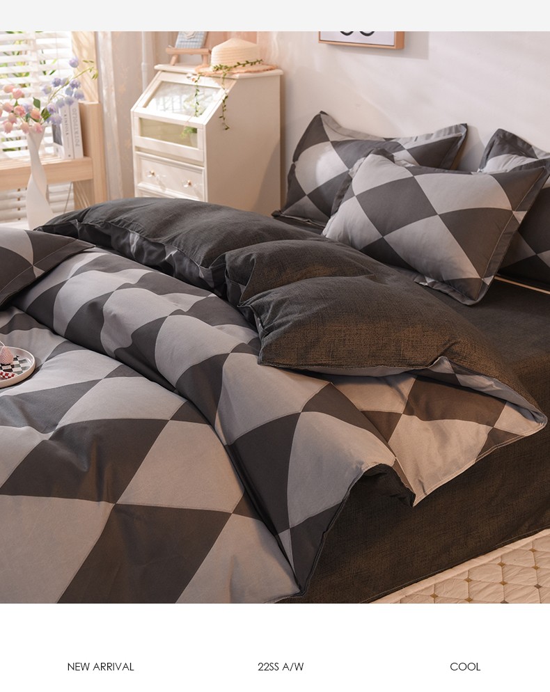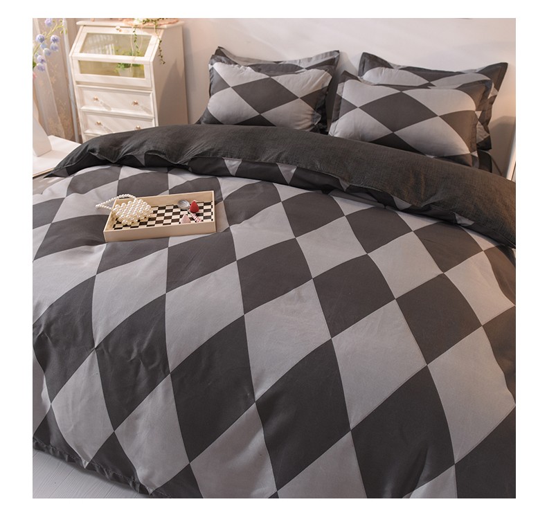 妖妖家纺 2023新款芦荟棉AB双版印花四件套 菱形格灰