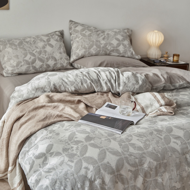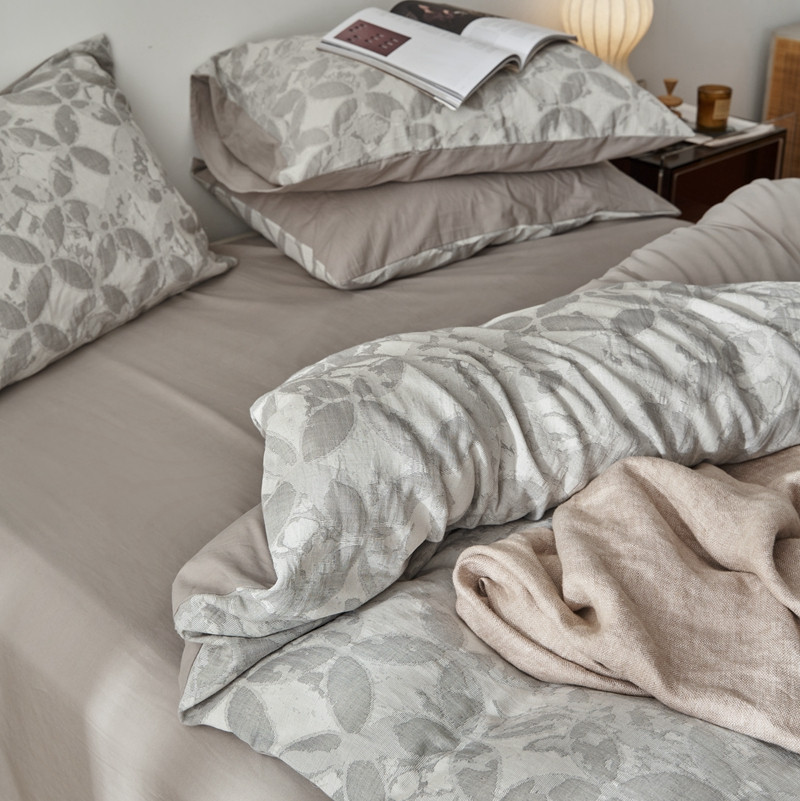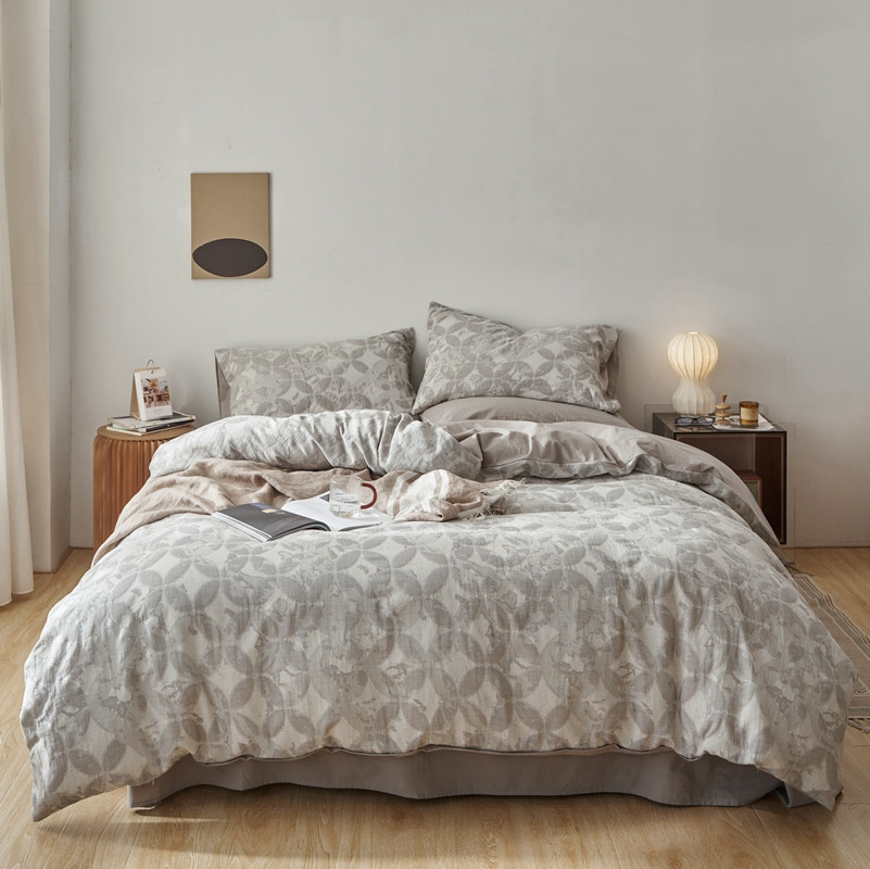 (总)简家居 2025新款20%亚麻80%棉棉麻提花四件套-法颂,法颂