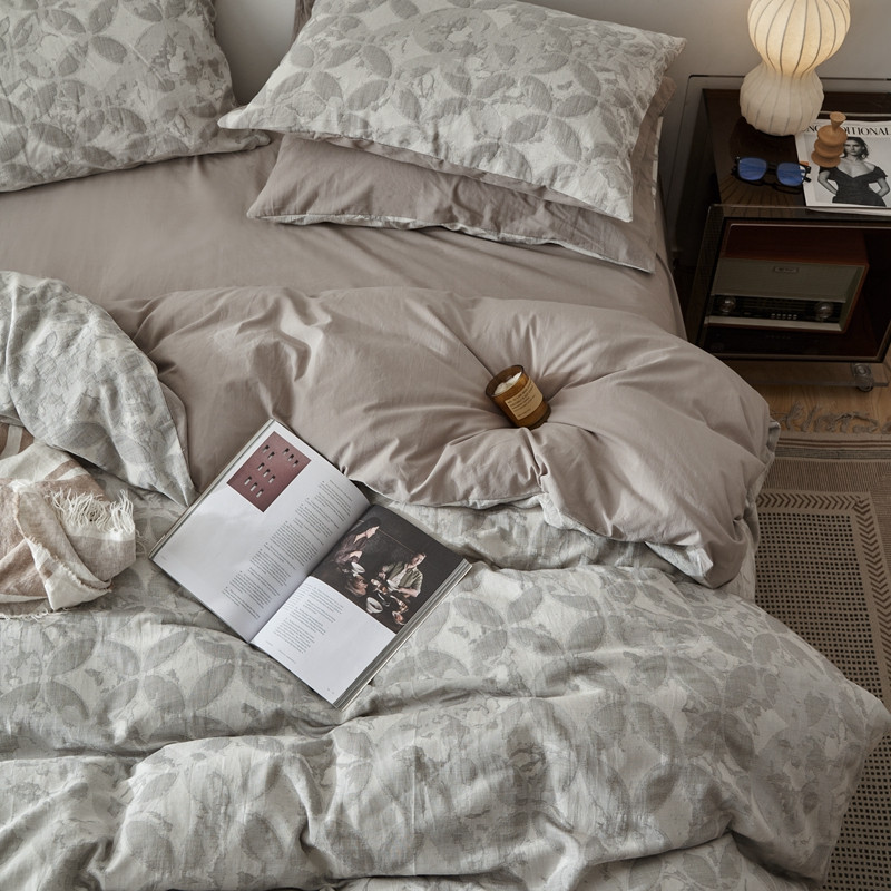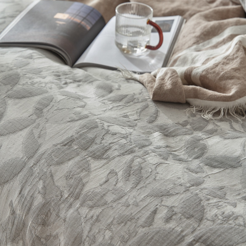(总)简家居 2025新款20%亚麻80%棉棉麻提花四件套-常青藤,常青藤