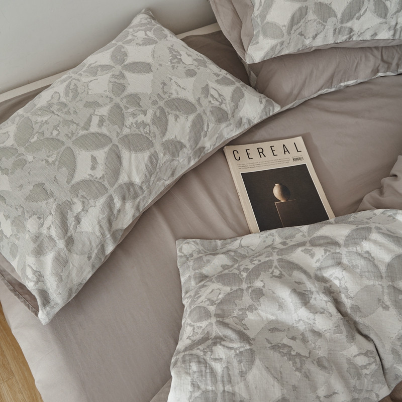 (总)简家居 2025新款20%亚麻80%棉棉麻提花四件套-卢浮秘境,卢浮秘境