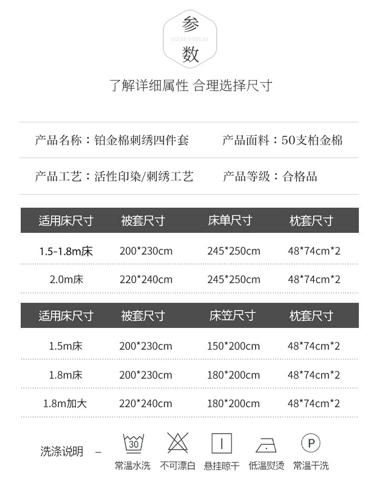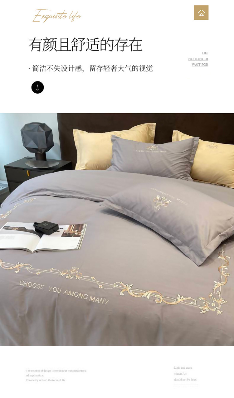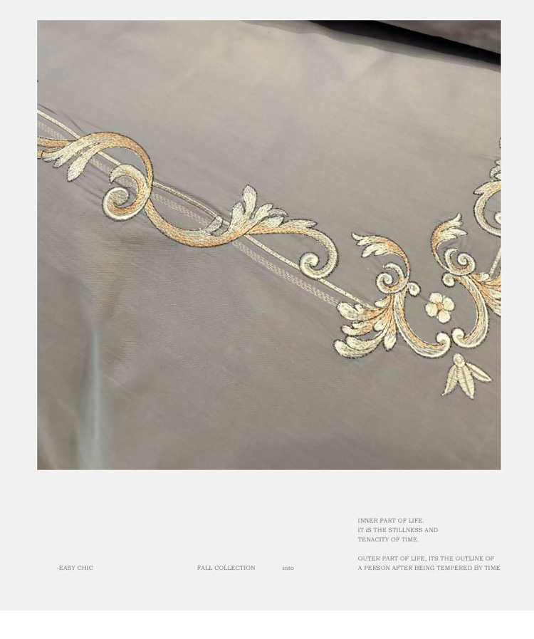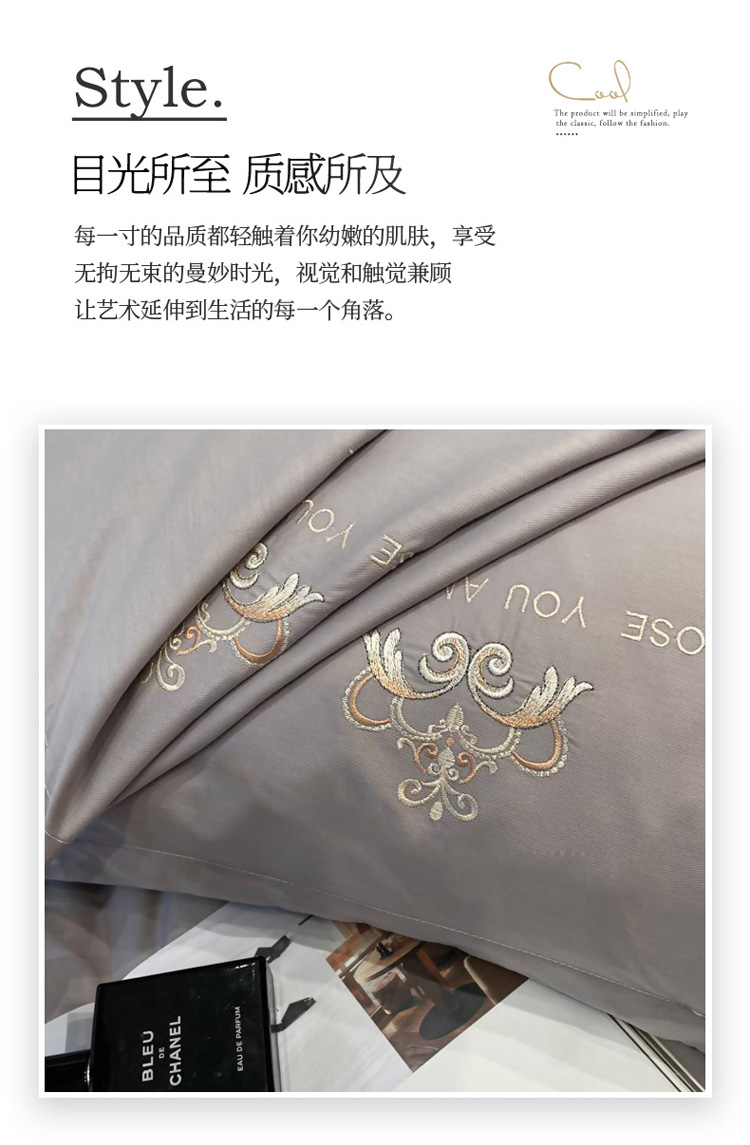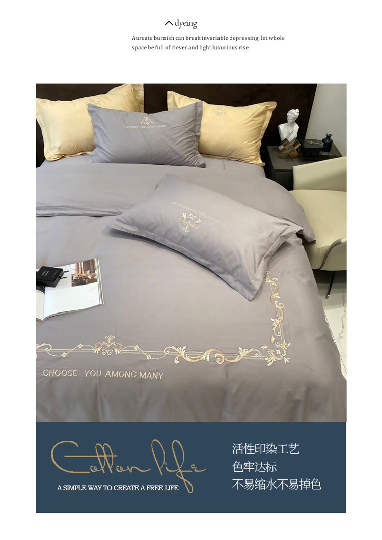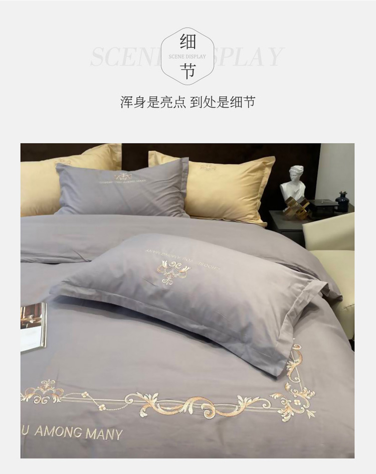 商品名称:慕尚 2025新款纯棉50支铂金棉刺绣四件套 铂金灰