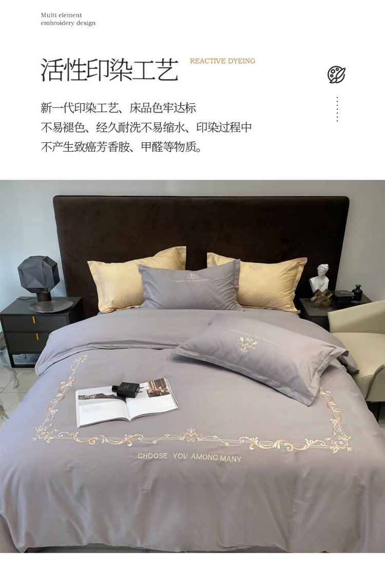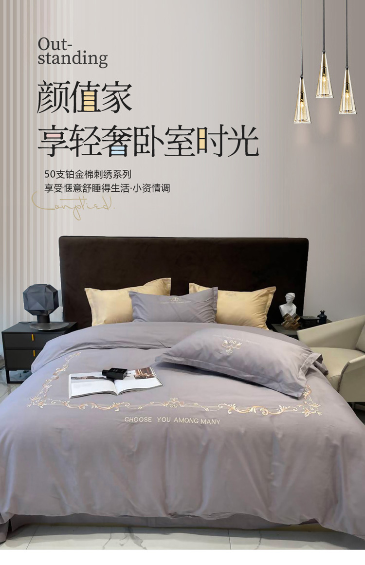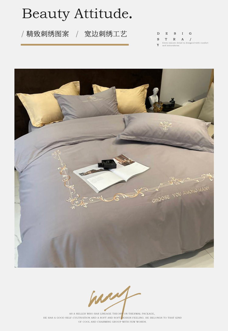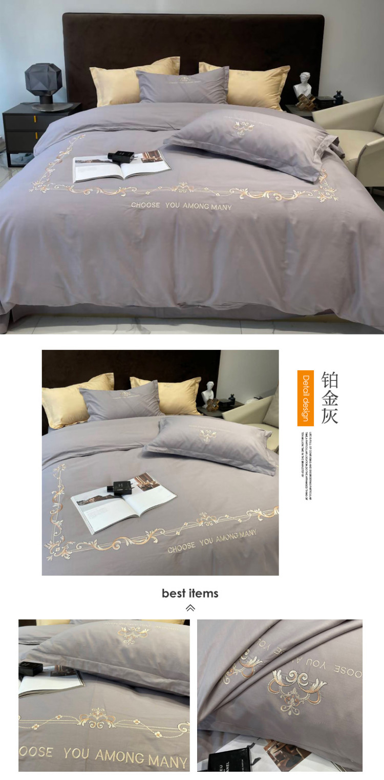 慕尚 2025新款纯棉50支铂金棉刺绣四件套 铂金灰