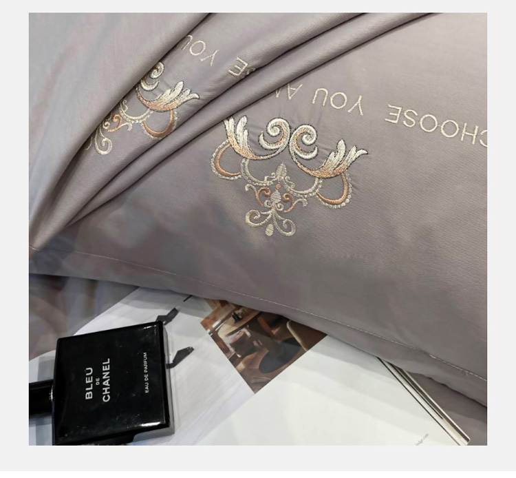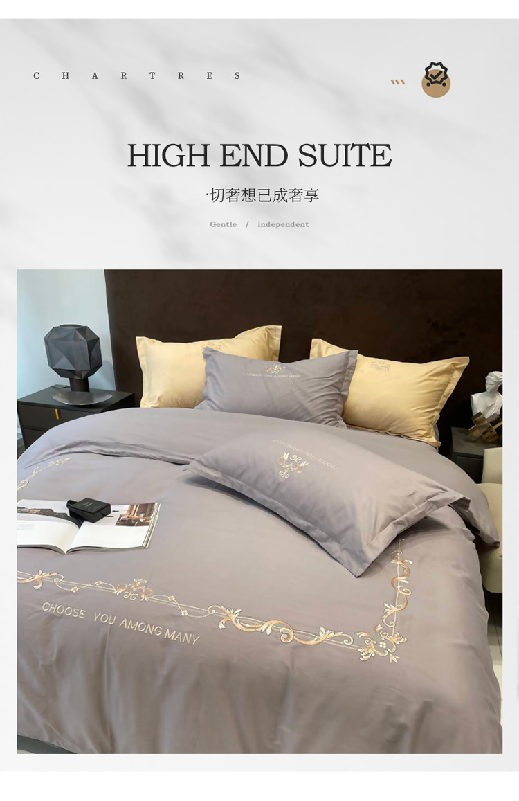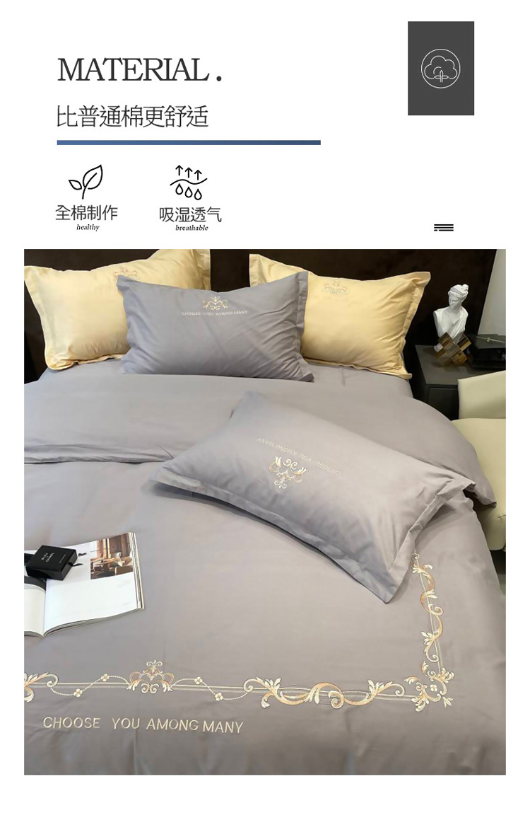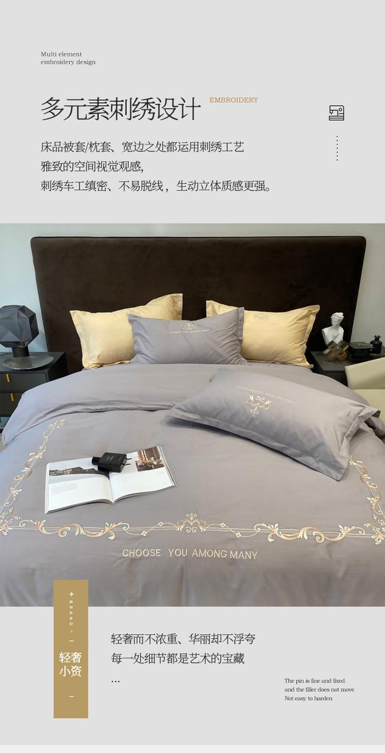 慕尚 2025新款纯棉50支铂金棉刺绣四件套 铂金灰